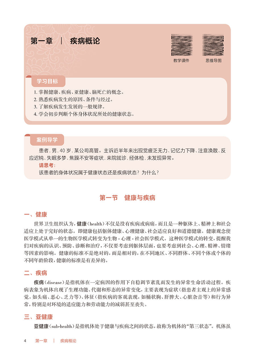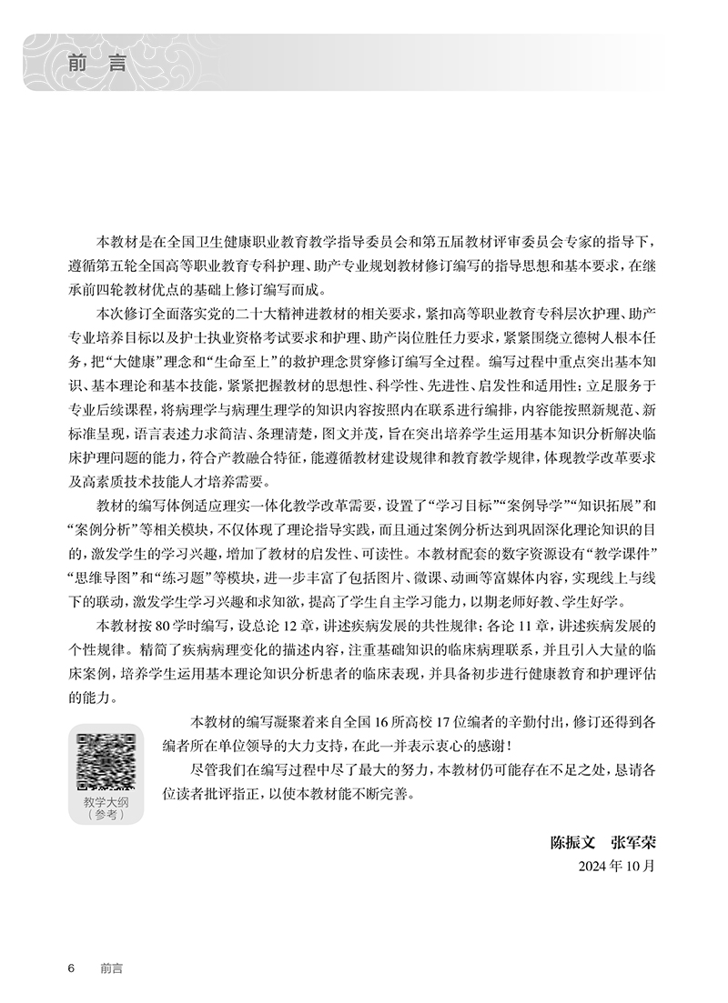 本教材为高等职业教育专科护理类专业“十四五”规划教材之一、国家卫生健康委员会“十四五”规划教材之一。本教材以高等职业教育护理、助产专业的人才培养目标为出发点,突出基本理论、基本知识、基本技能,紧紧把握教材的思想性、科学性、先进性、启发性和适用性;充分考虑护理、助产专业的特点,紧扣国家执业护士考试大纲,立足服务于专业后继课程;将病理学与病理生理学的知识内容按照内在的联系进一步优化章节顺序和结构,语言表述力求简洁、条理、清楚,图文并茂,以期老师“好教”、学生“好学”。