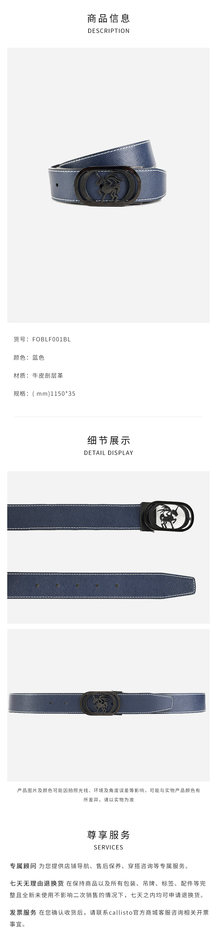 callisto蓝色牛皮剖层革皮带 FOBLF001BL