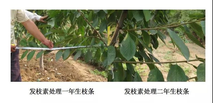 下图为2021年黄河农场樱桃使用发枝素后的发枝情况,比较理想: