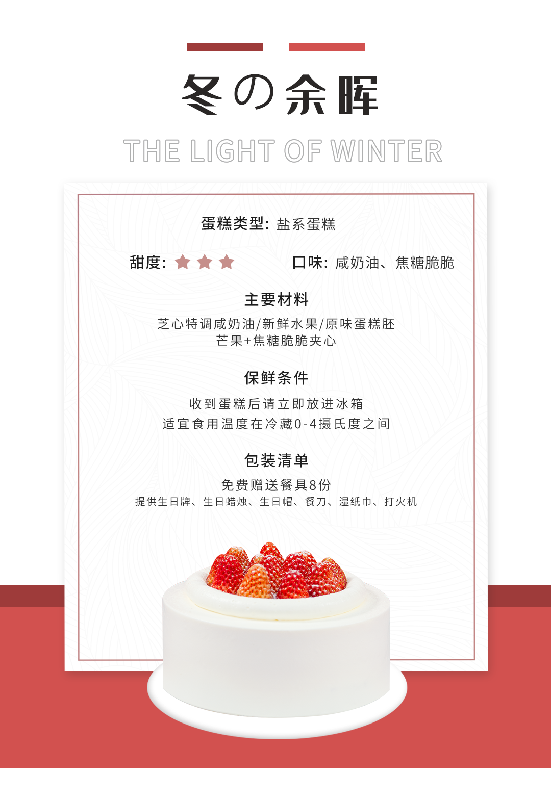 (咸味)动物奶油【冬の余晖】- 新鲜水果+焦糖脆脆夹心(11月——2月正值草莓,这时候的很好吃哦,其他时间购买草莓蛋糕会偏酸哦 )