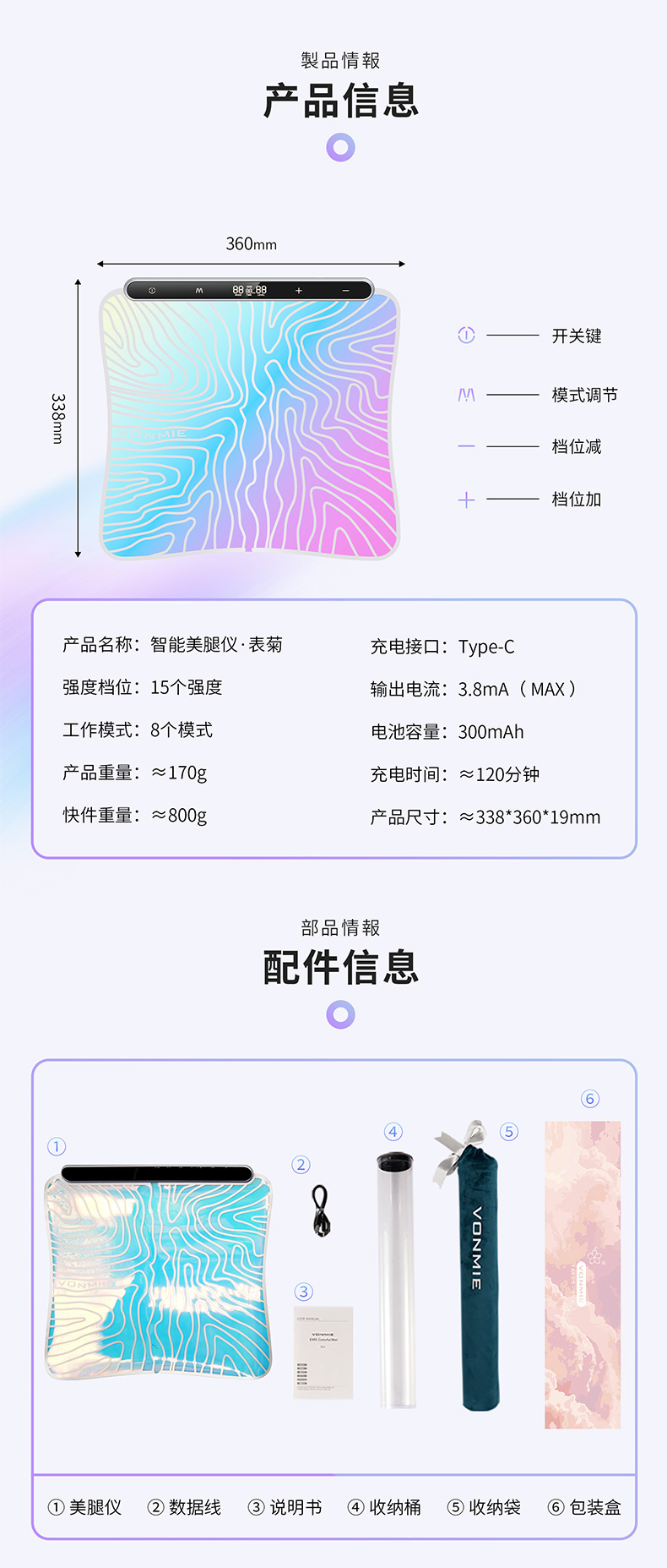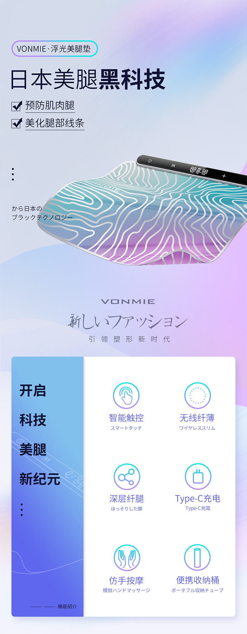 【足底按摩 告别大象腿】日本vonmie塑形浮光美腿垫 足底按摩足疗美腿仪 EMS微电流提拉 塑造小腿线条