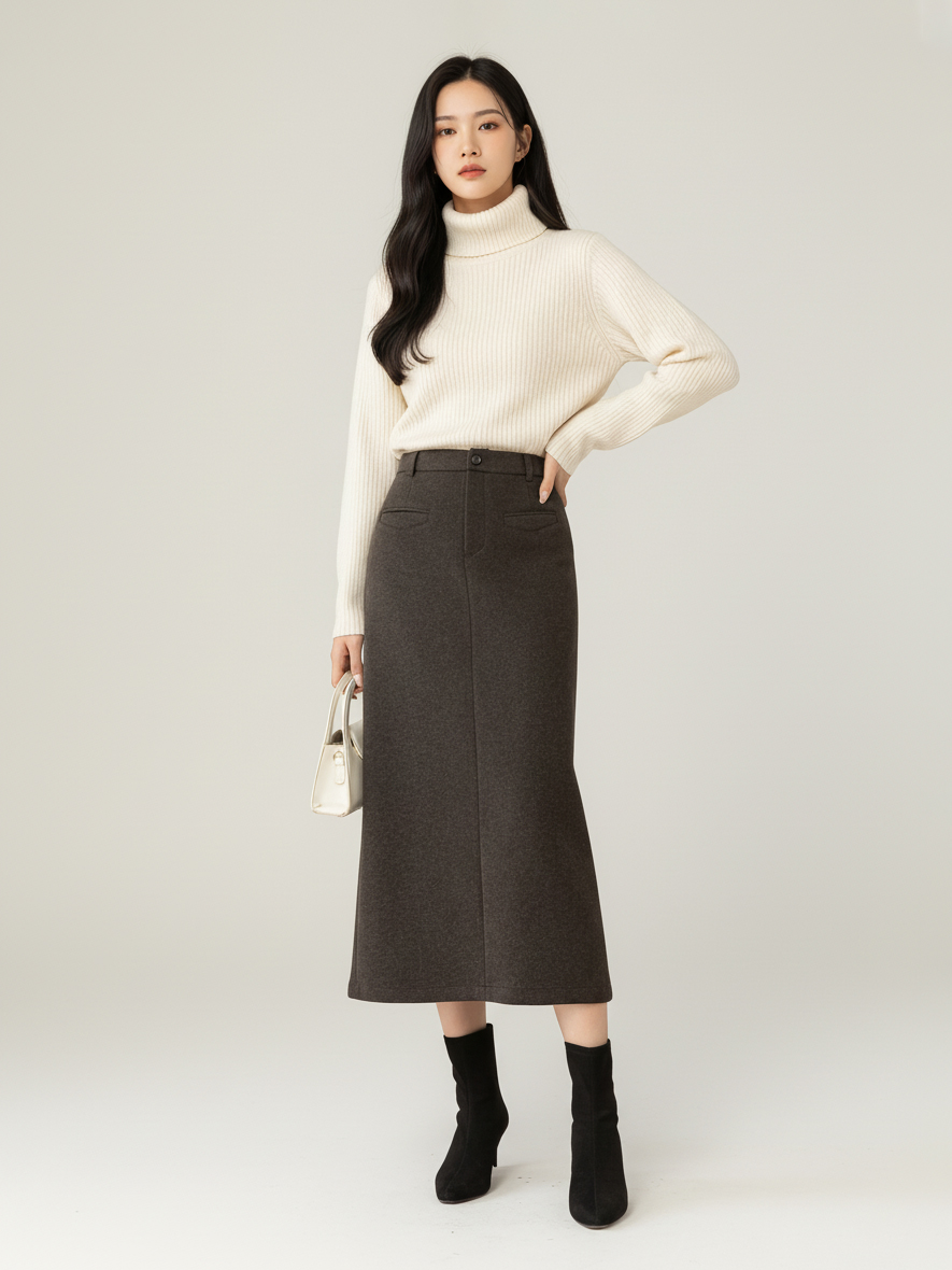 Grace&Glam 高级感高腰开叉直筒半身裙