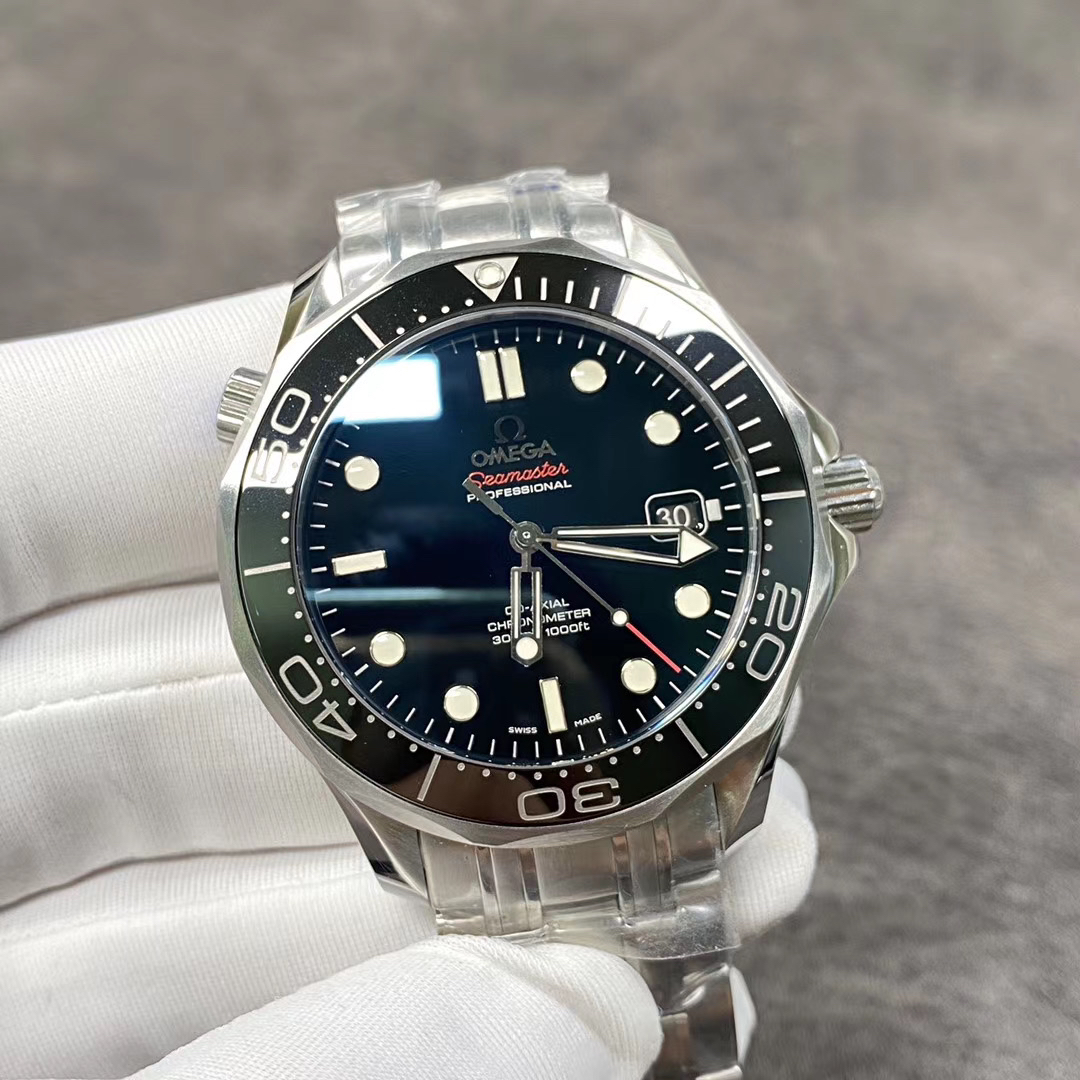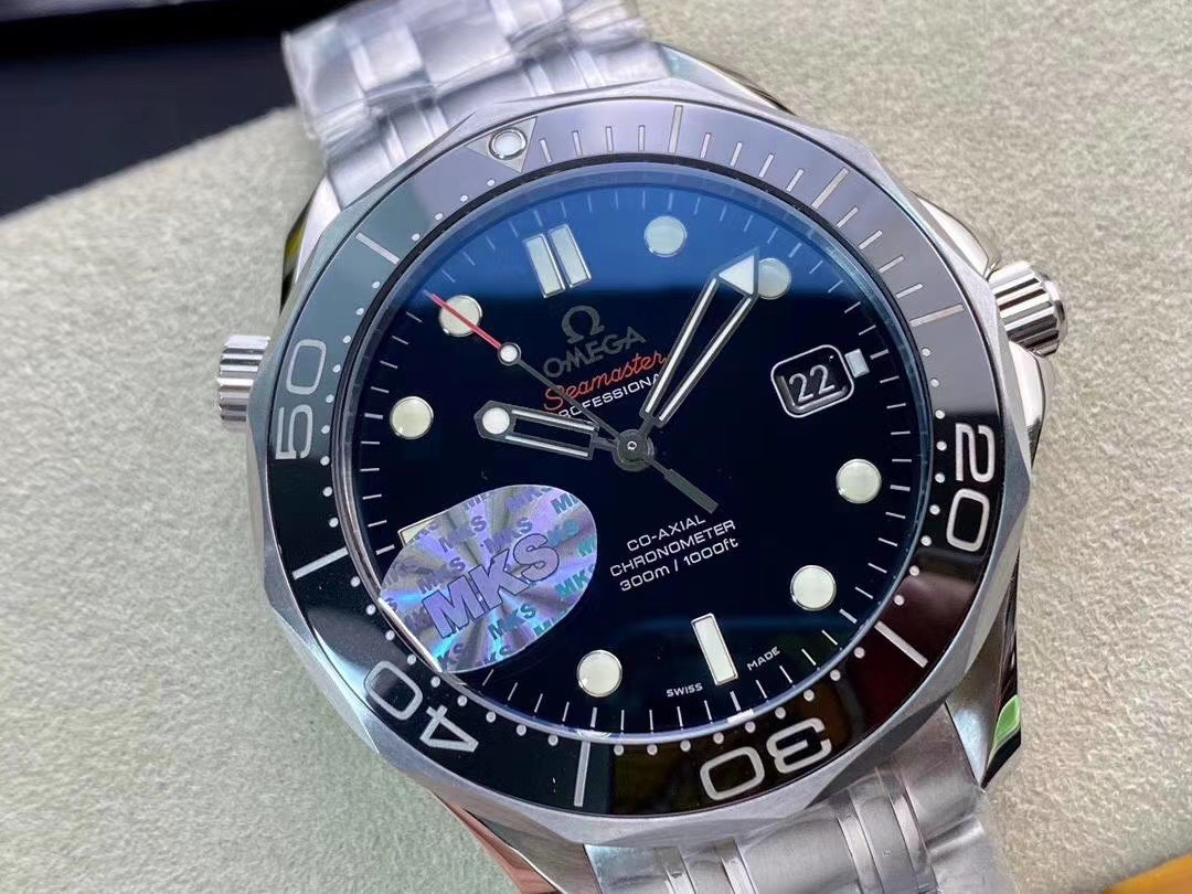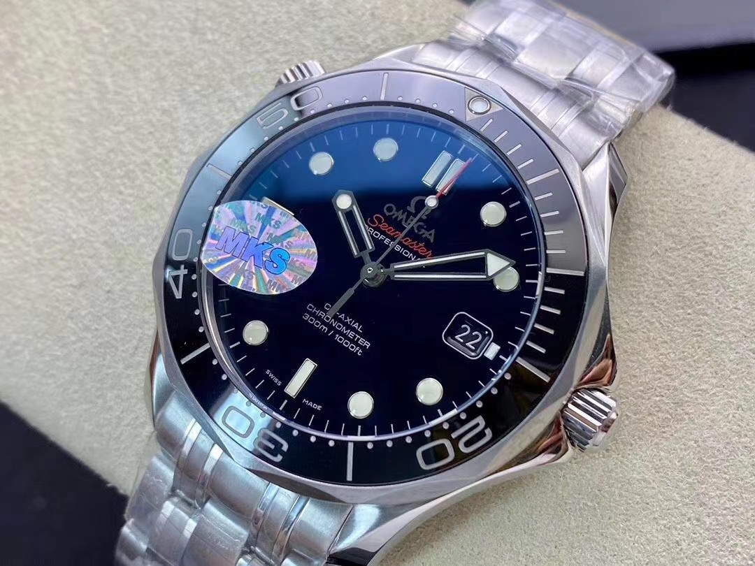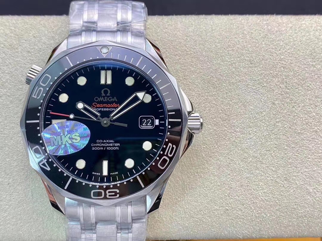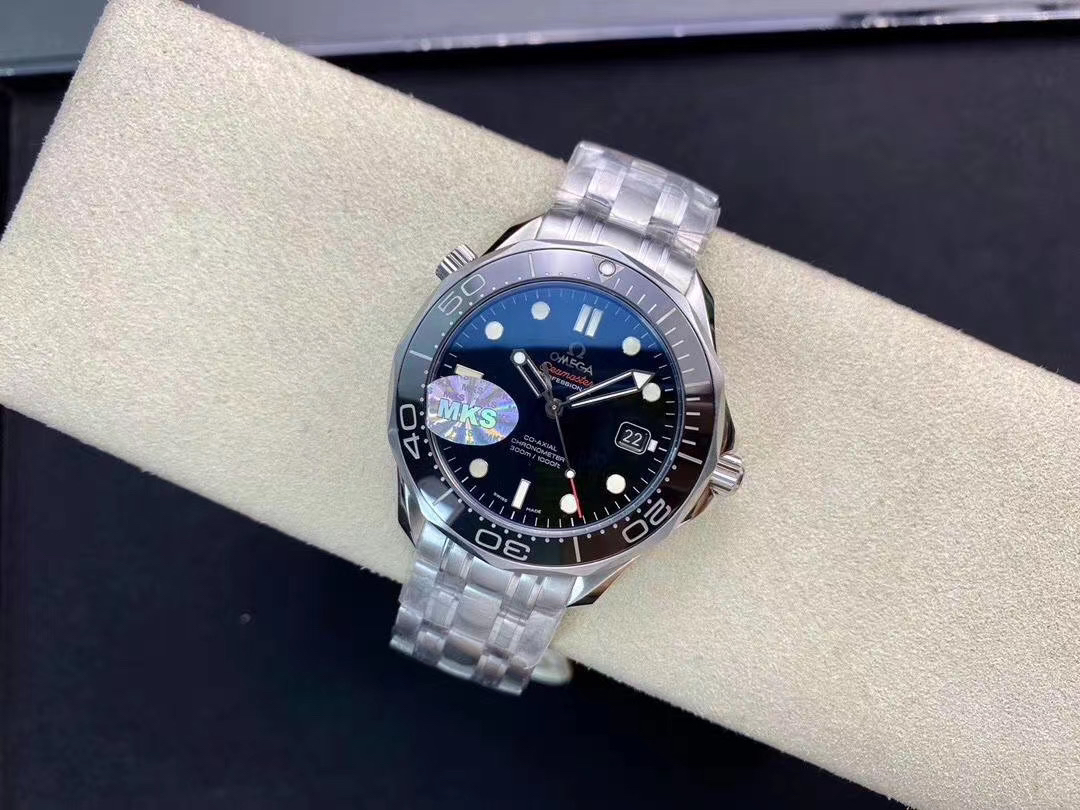 MKS欧米茄海马300米zhongji版本。黑色陶瓷圈黑面 后盖海马浮雕做工chao赞 41mm直径,搭载精准稳定2824机芯 海马系列中的dingji复刻。