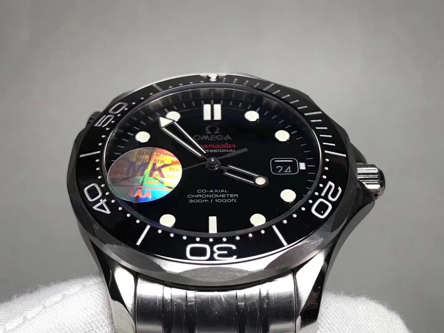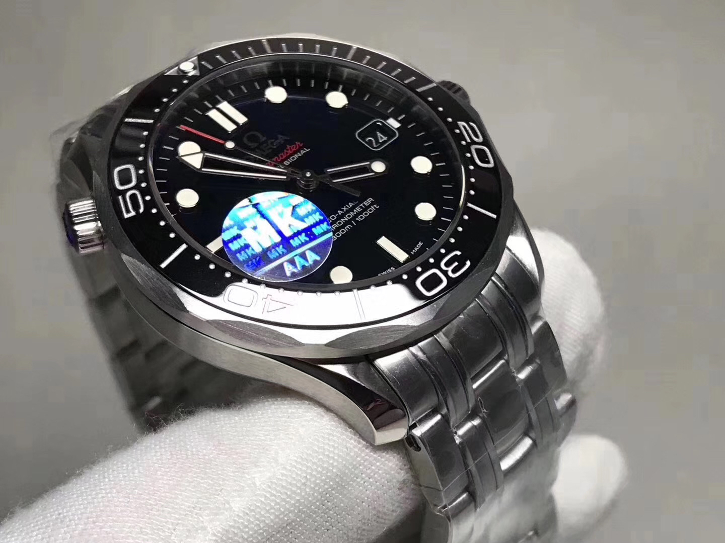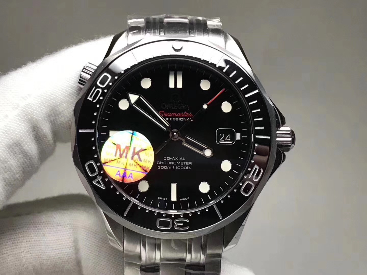 MKS欧米茄海马300米zhongji版本。黑色陶瓷圈黑面 后盖海马浮雕做工chao赞 41mm直径,搭载精准稳定2824机芯 海马系列中的dingji复刻。
