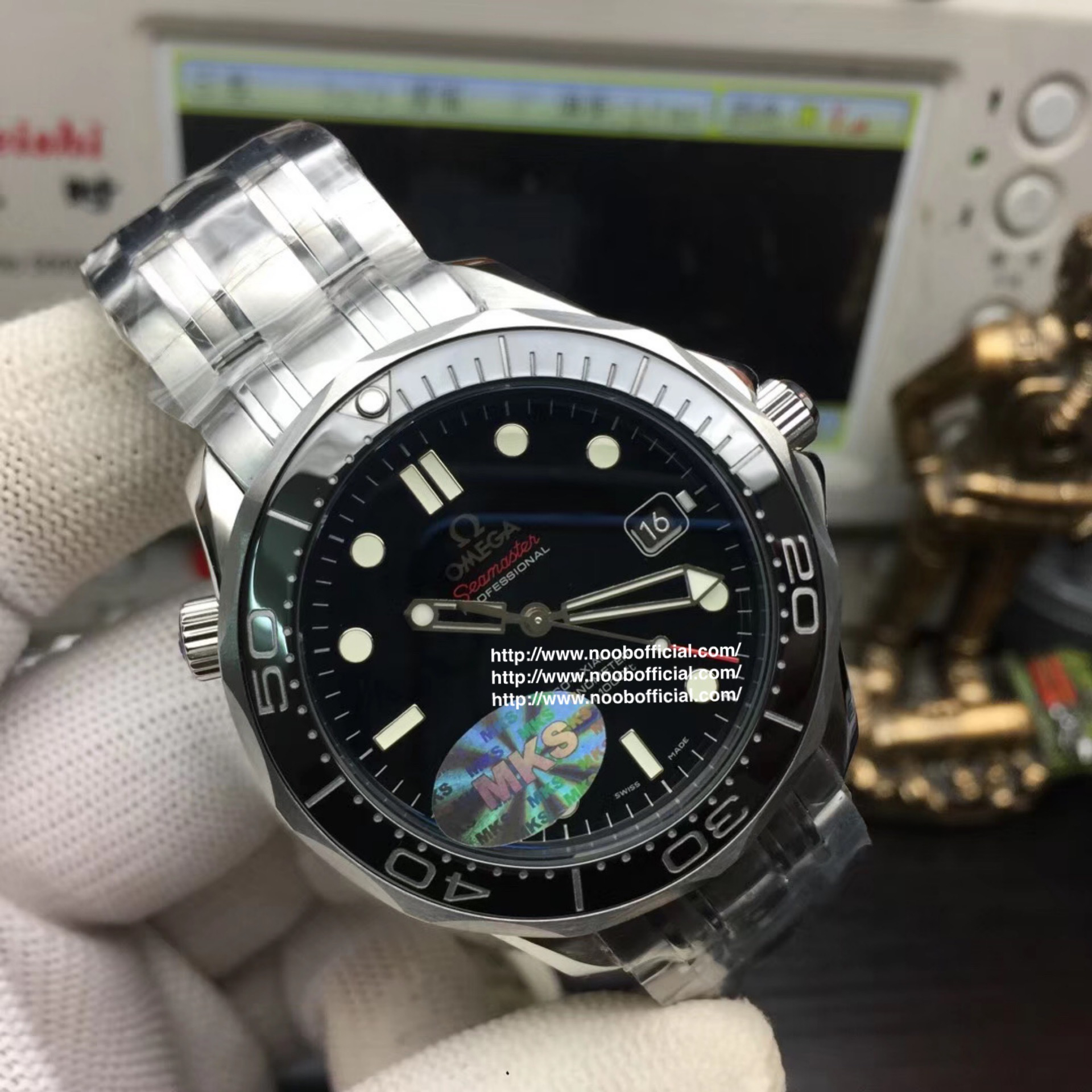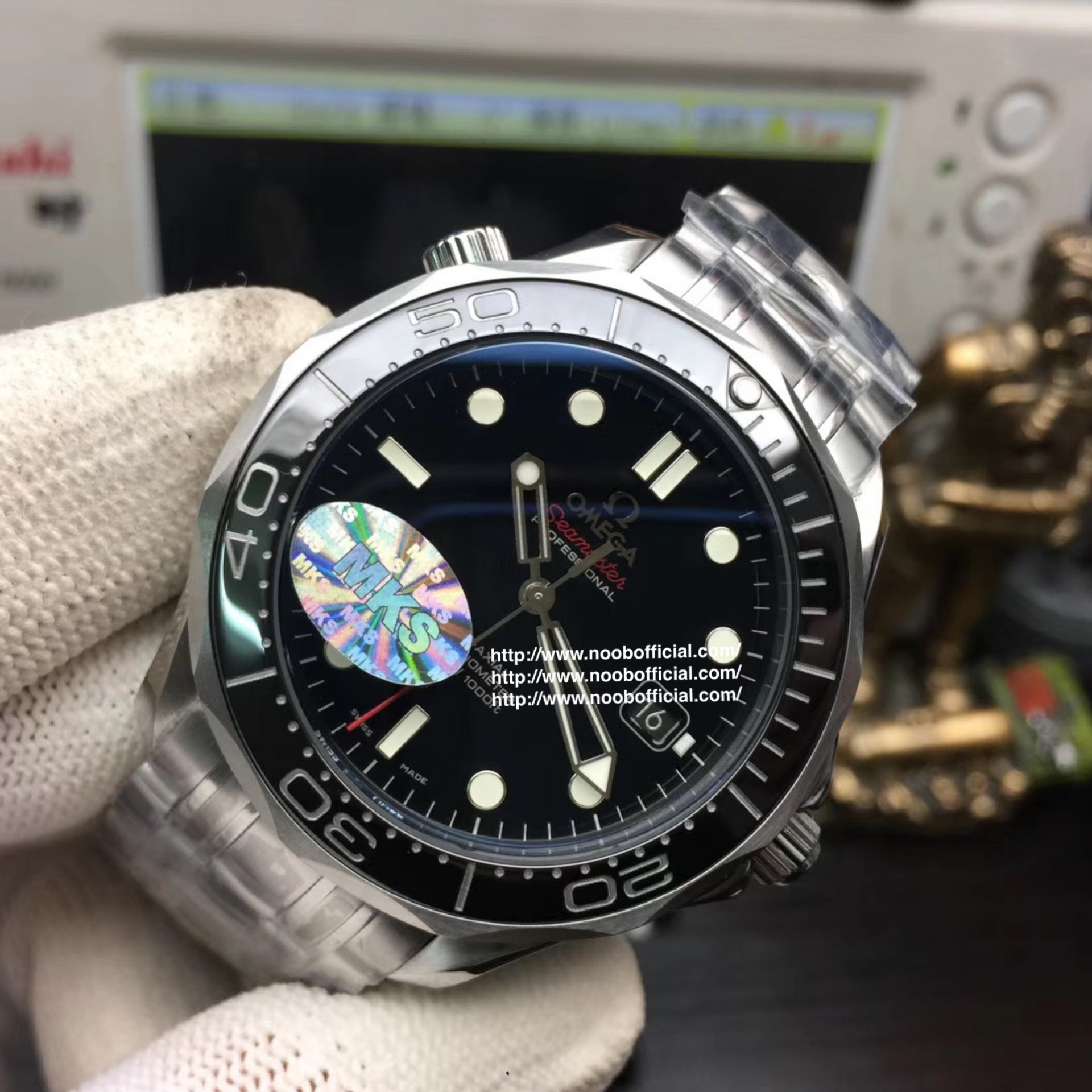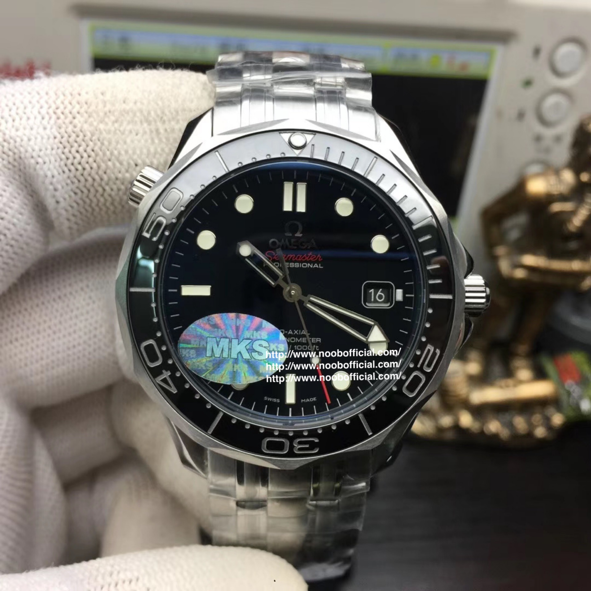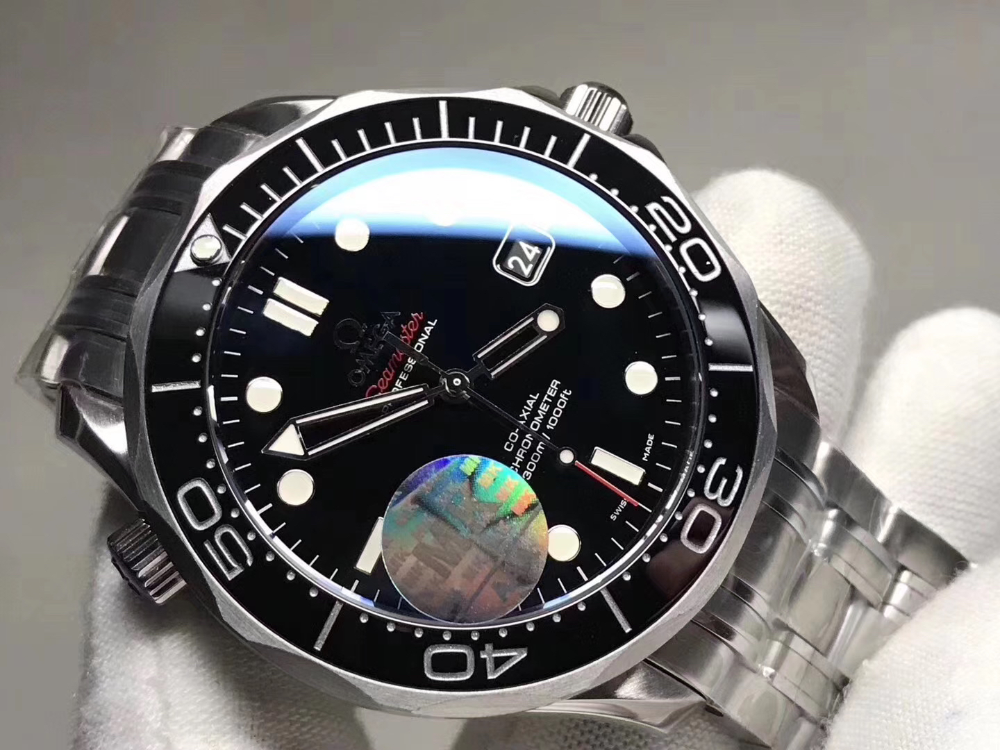 MKS欧米茄海马300米zhongji版本。黑色陶瓷圈黑面 后盖海马浮雕做工chao赞 41mm直径,搭载精准稳定2824机芯 海马系列中的dingji复刻。