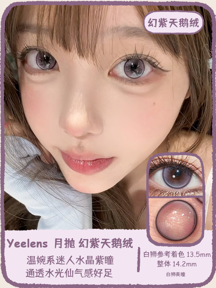 yeelens旗下 幻紫天鹅绒&小狗汉堡&月光人鱼 14.2mm白狮参考着色中大直径 月抛2片