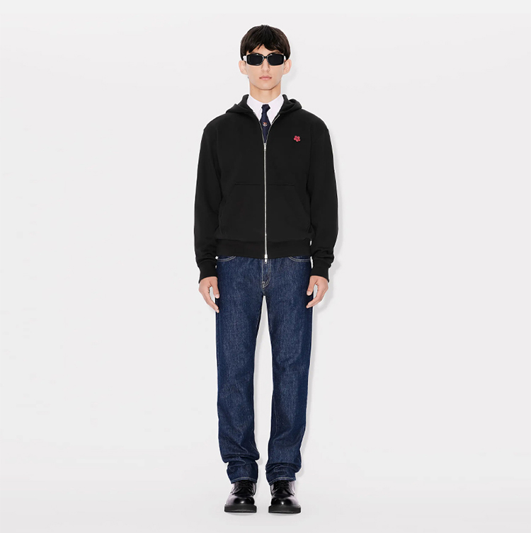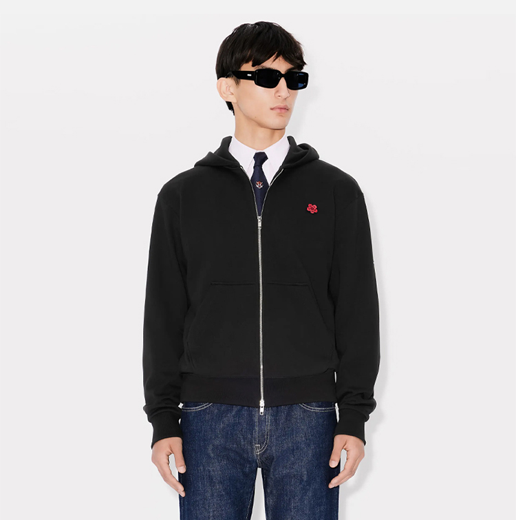 KENZO 高田贤三 男士小海棠花刺绣徽标拉链连帽卫衣 黑色 FE65 SW225 4MF 99J