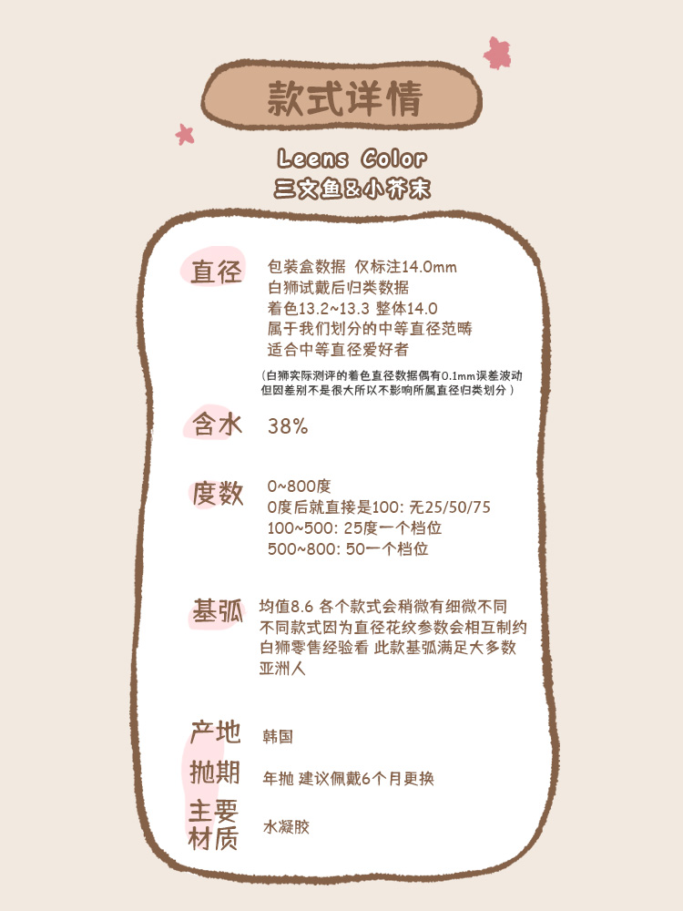 Leenscolor旗下 ·三文鱼&小芥末 · 14.0mm中等直径 年抛美瞳 2片