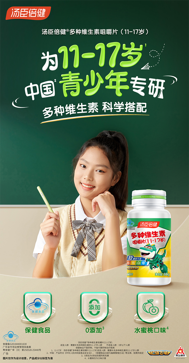 汤臣倍健 多种维生素咀嚼片青少年型(11-17岁适用)超级飞侠装