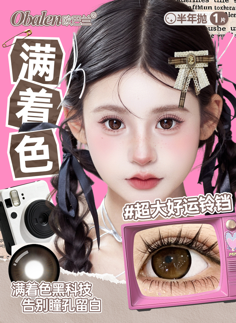新品【超大满着色】方盒系列Obalen欧巴兰扩瞳显色【超大好运铃铛】14.5大直径古早芭比千金款半年抛美瞳非离子隐形眼镜2片装
