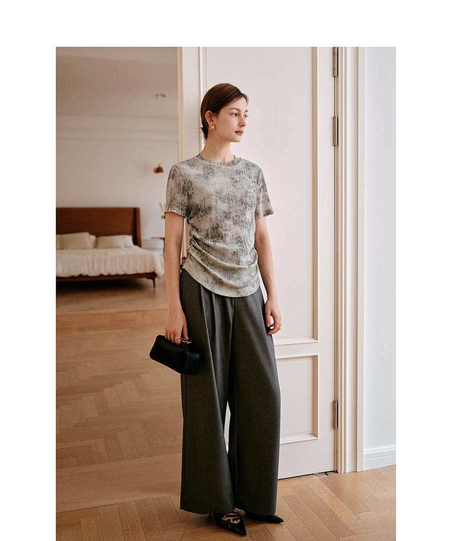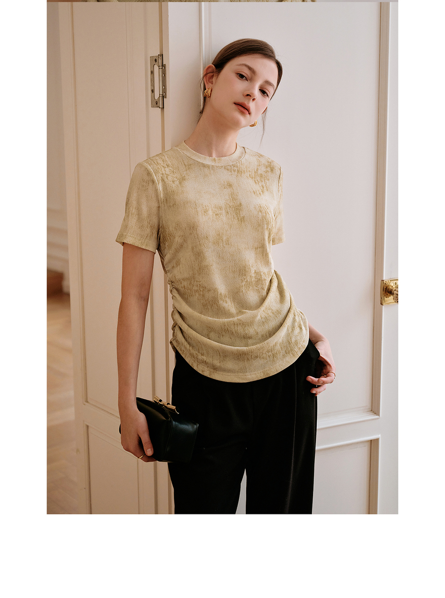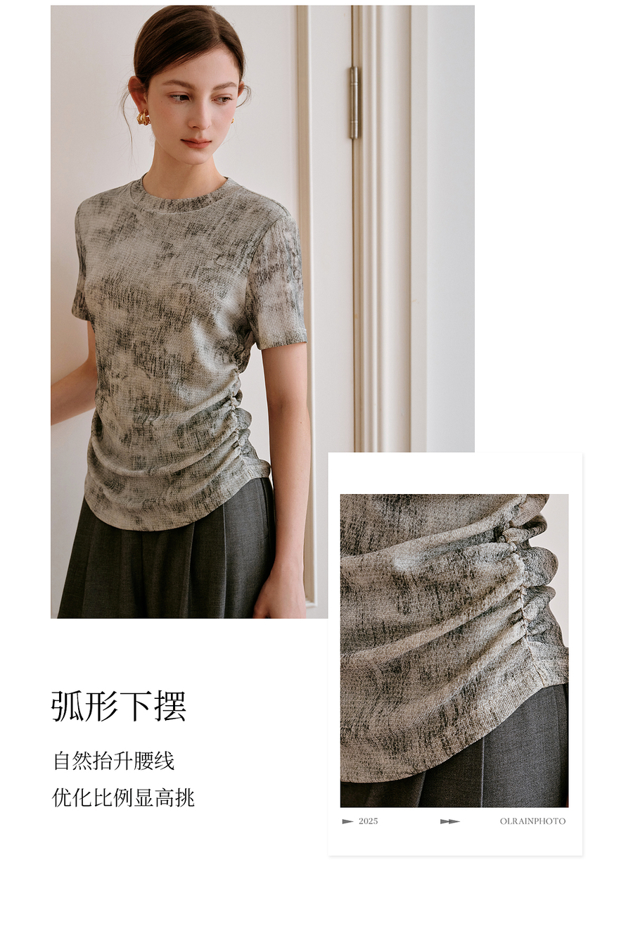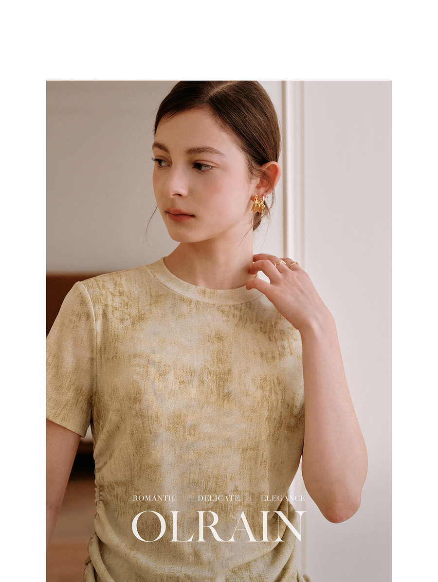 OLrain欧芮儿2025年夏季新款设计感网纱T恤圆领浪漫印花显瘦上衣