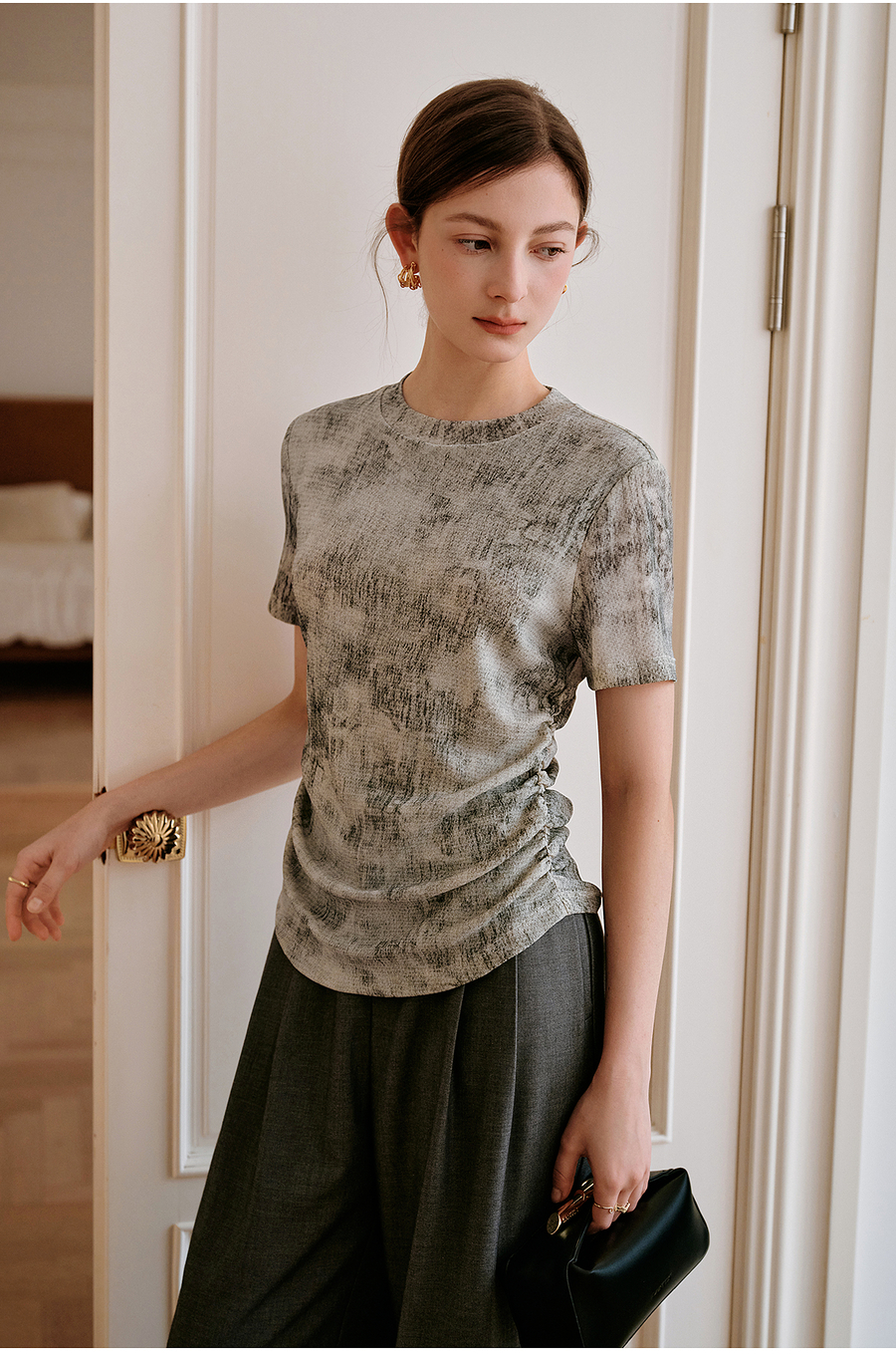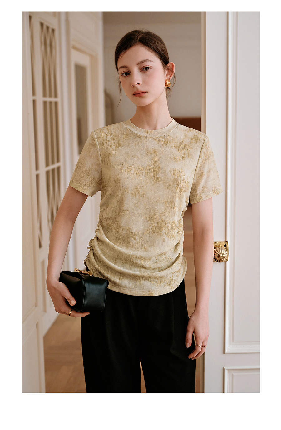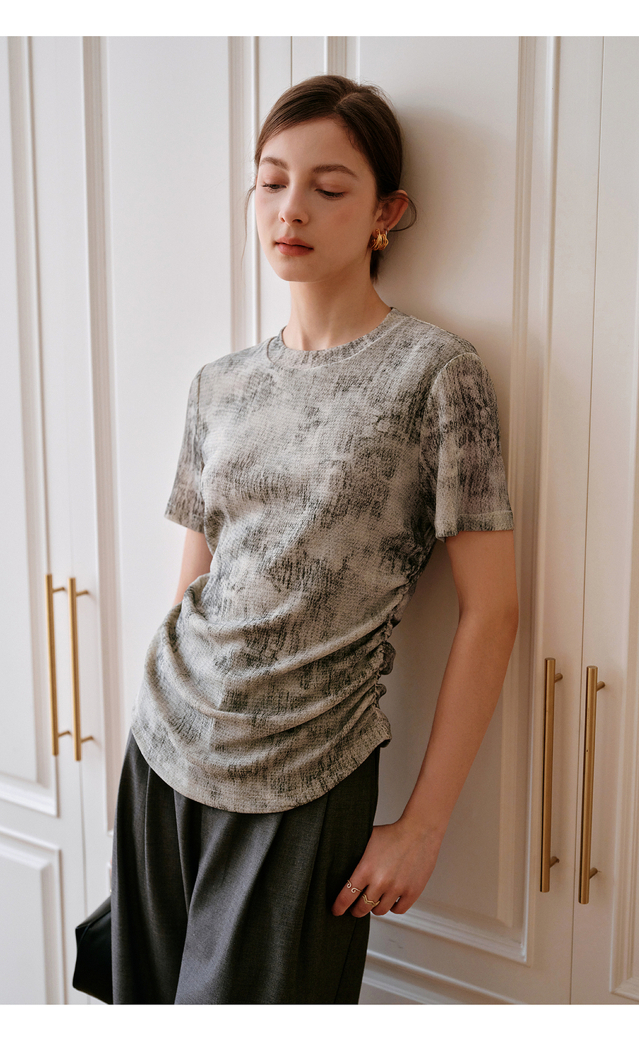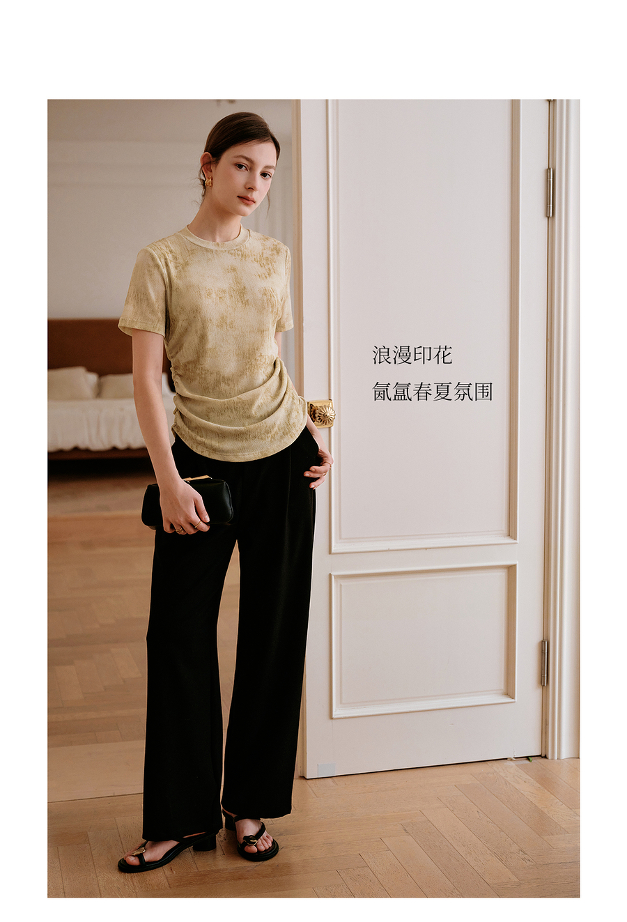 OLrain欧芮儿2025年夏季新款设计感网纱T恤圆领浪漫印花显瘦上衣