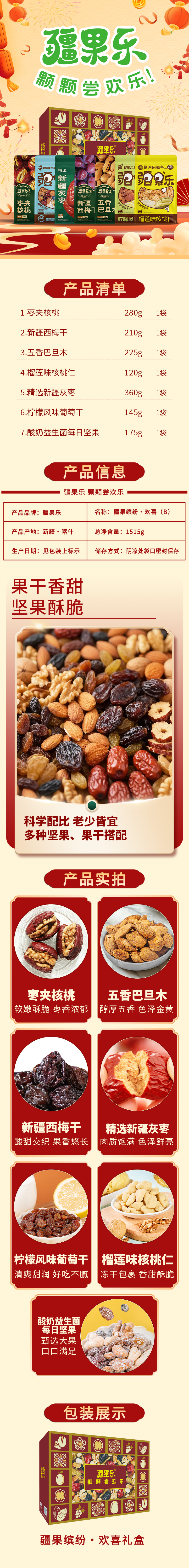 【严选】疆果乐新疆干果礼盒干货年货礼盒送礼长辈礼盒装 疆果缤纷·欢喜礼盒(B) 1515g (厂家直发)