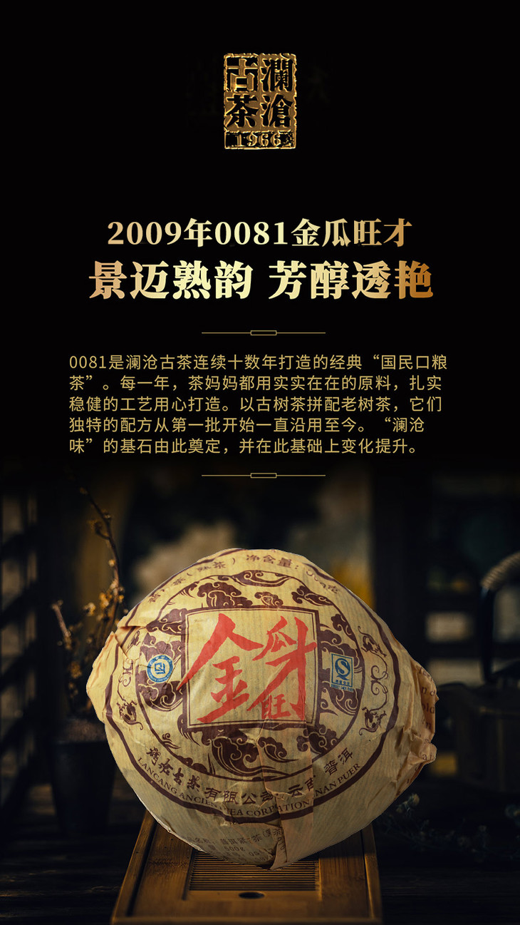 澜沧古茶 2009年0081金瓜旺才普洱熟茶沱茶500g/个