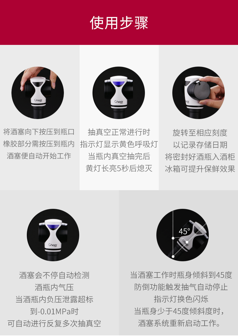 cheer启尔 电动红酒真空塞 自动式电子抽真空葡萄酒保鲜红酒塞