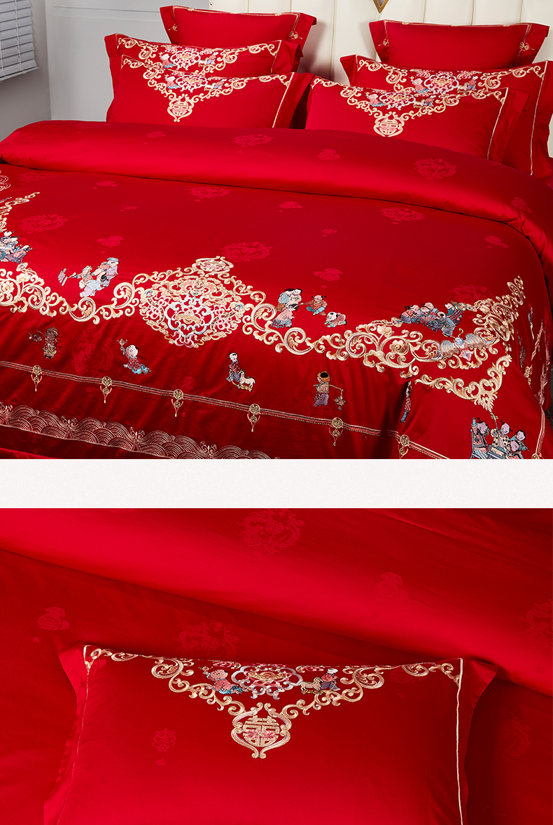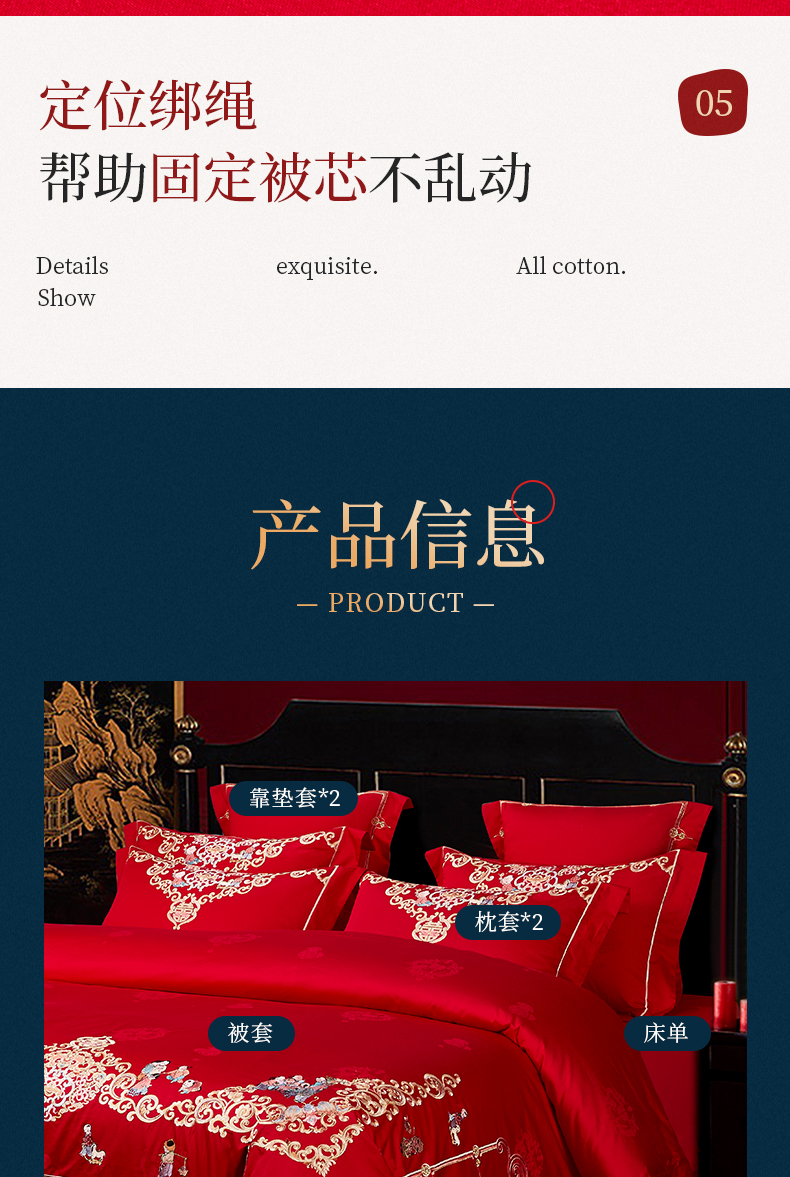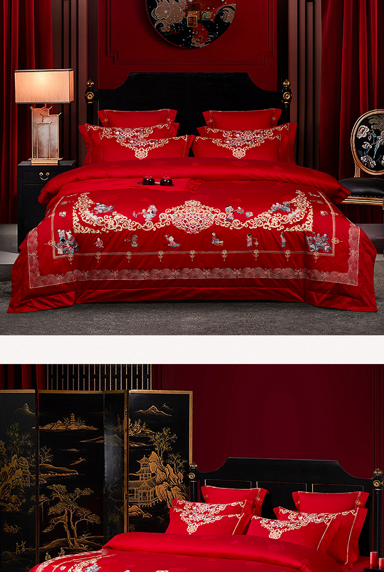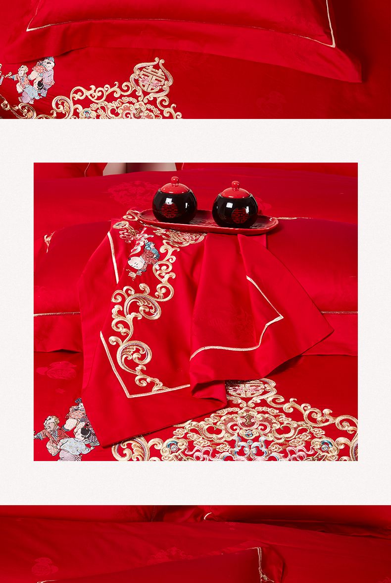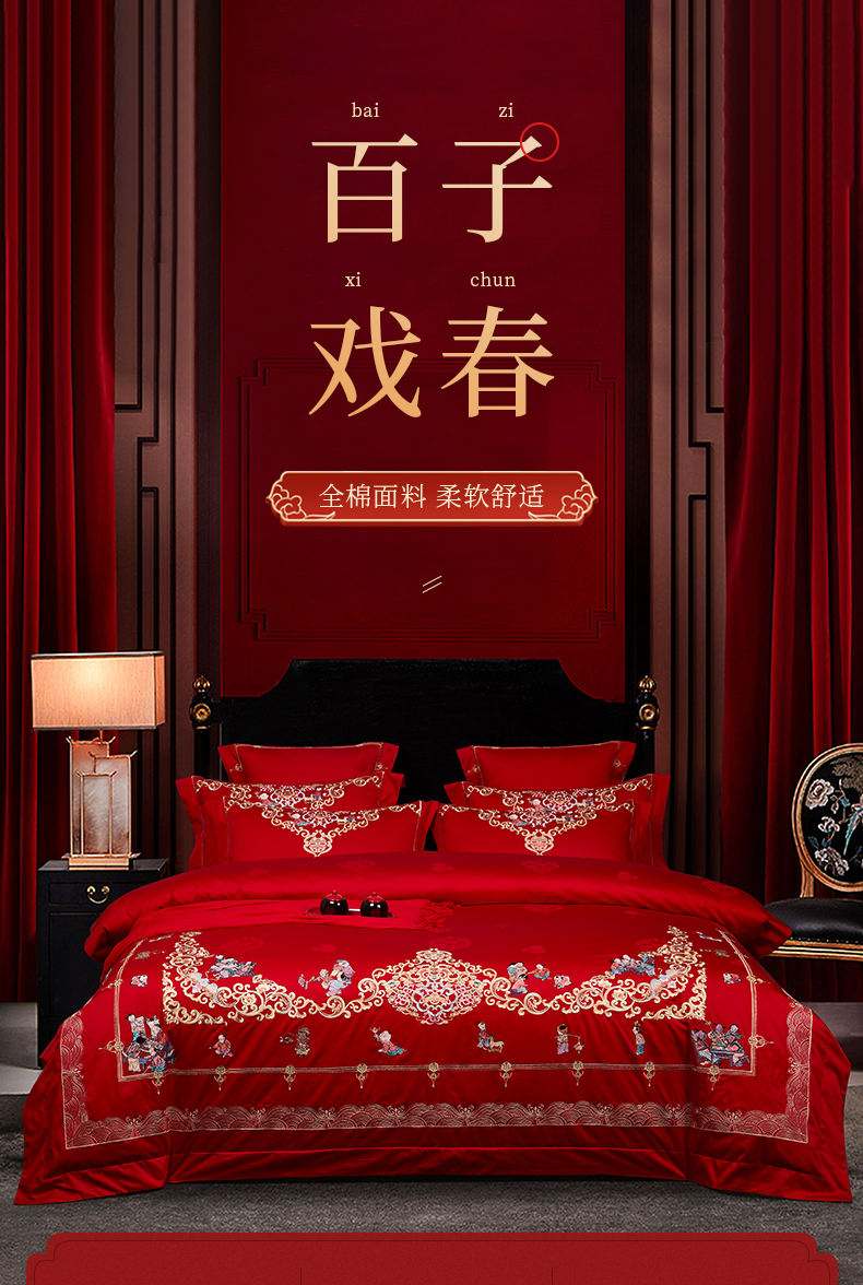 利路米喜庆大红古典中国风浪漫婚庆六件套百子戏春