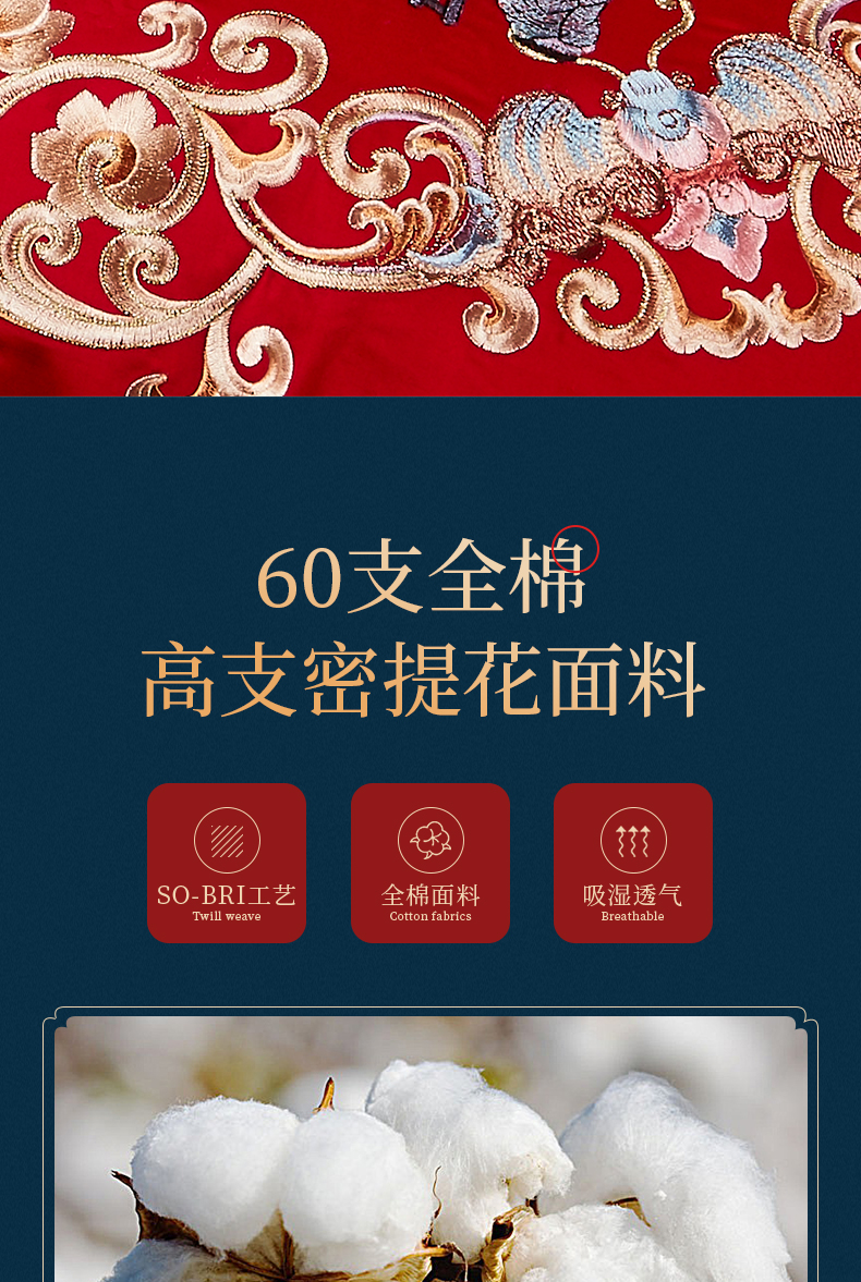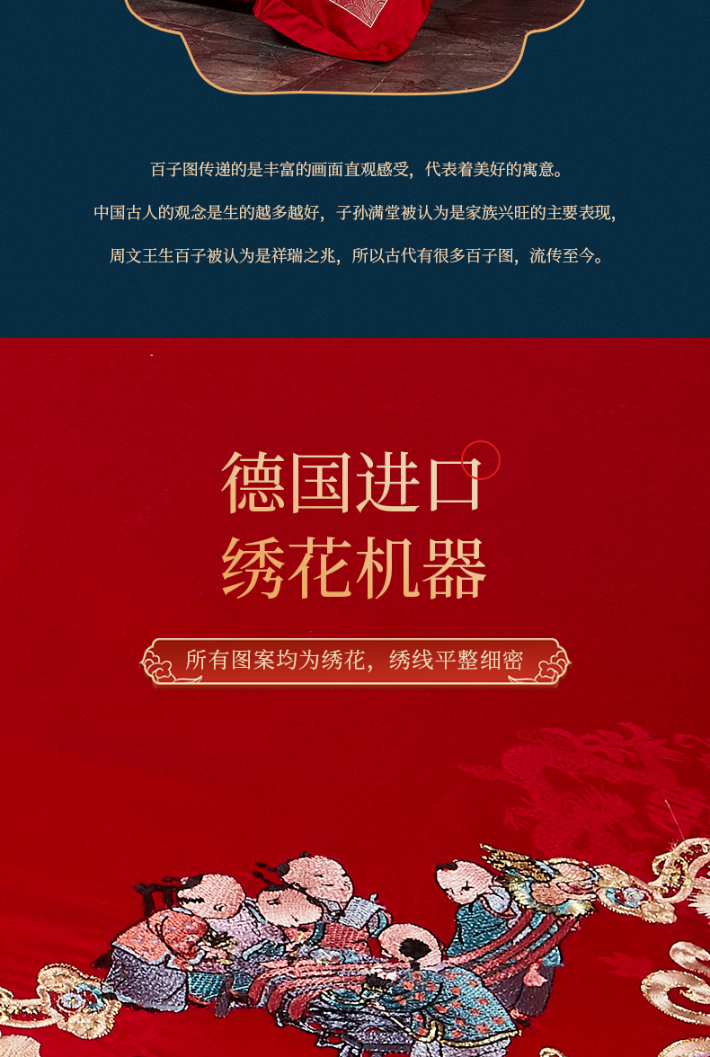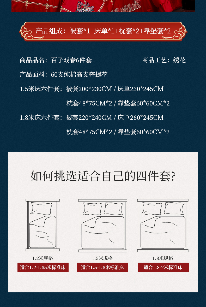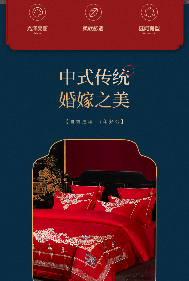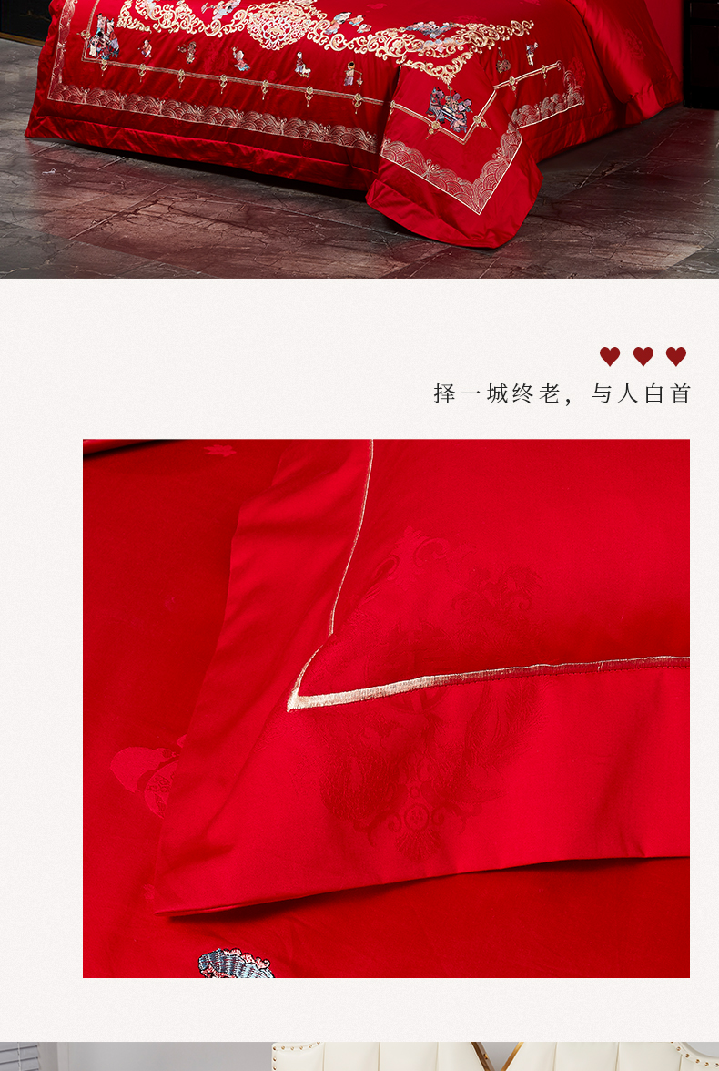 利路米喜庆大红古典中国风浪漫婚庆六件套百子戏春