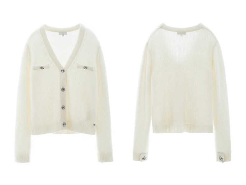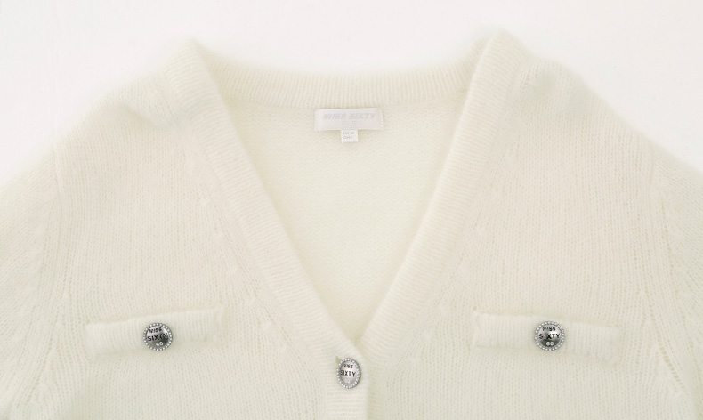 Miss Sixty2020冬季新款V领排扣白色毛织开衫外套女603RJ3940000