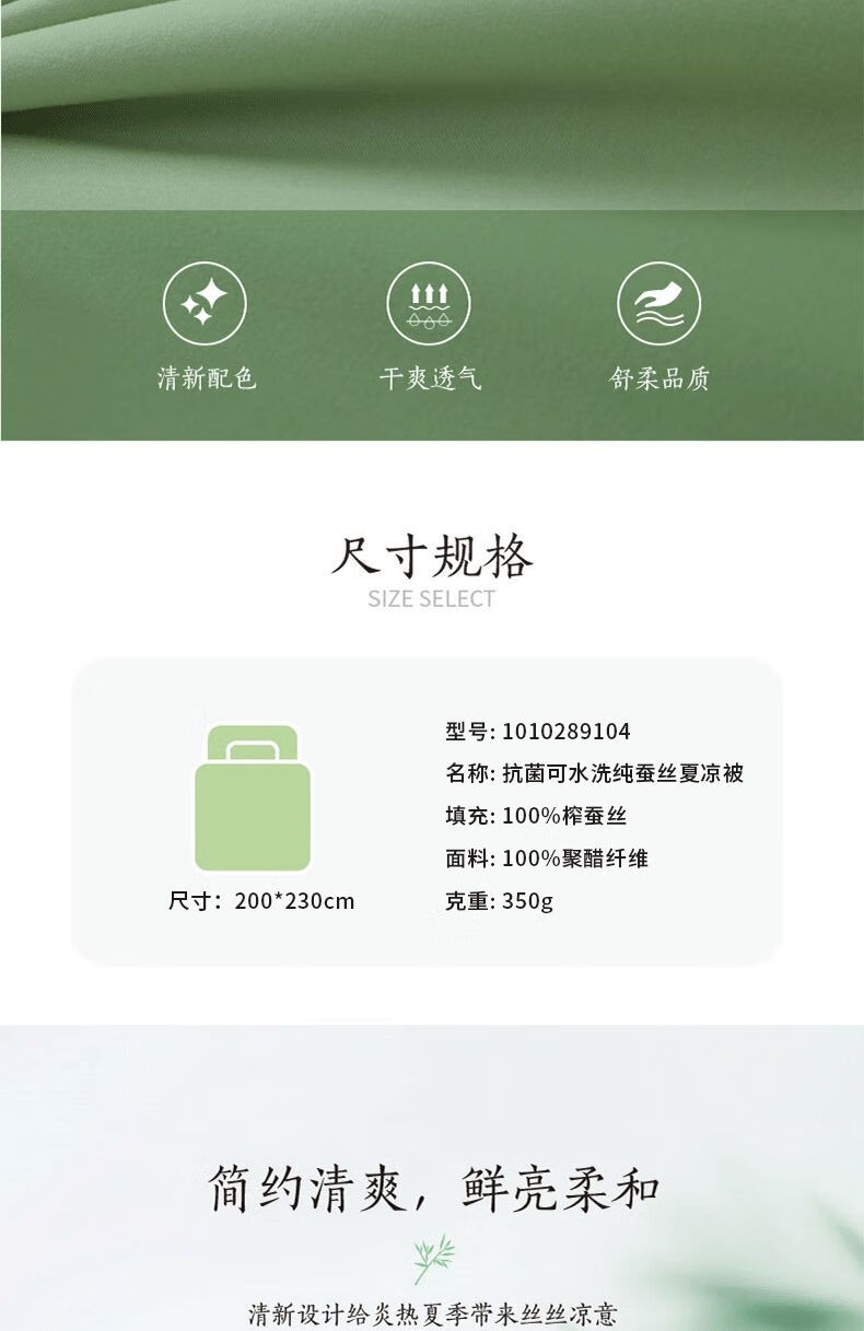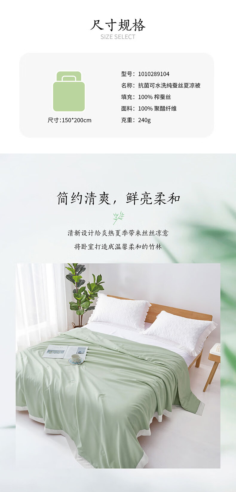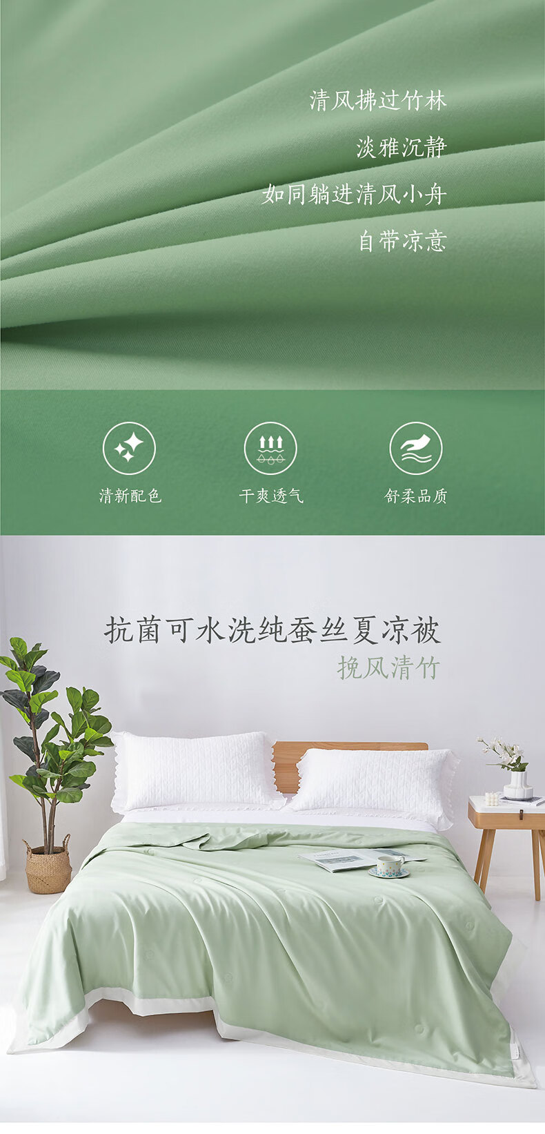 【分仓直发包邮】梦洁抗菌可水洗纯蚕丝夏凉被150×200cm—挽风清竹