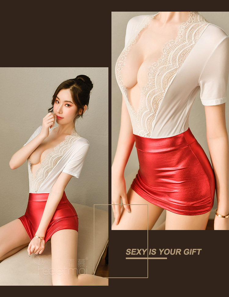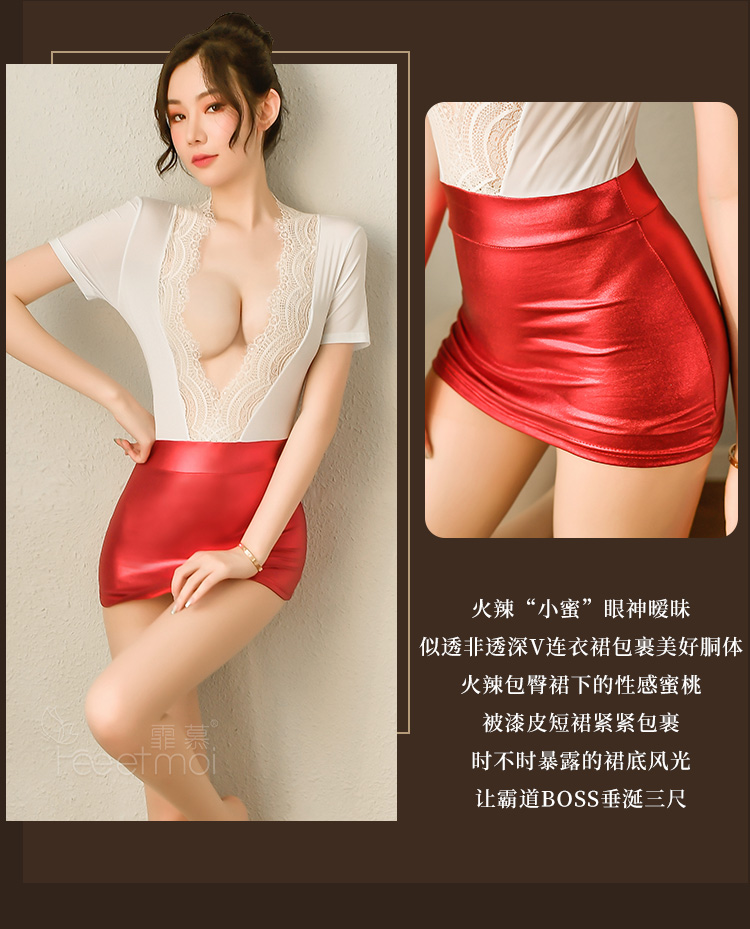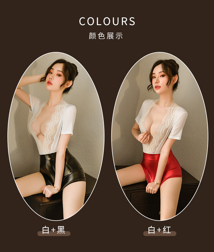 【秘书的荣耀】情趣内衣 制服 蕾丝 深V 漆皮 角色扮演 性感 包臀 6966