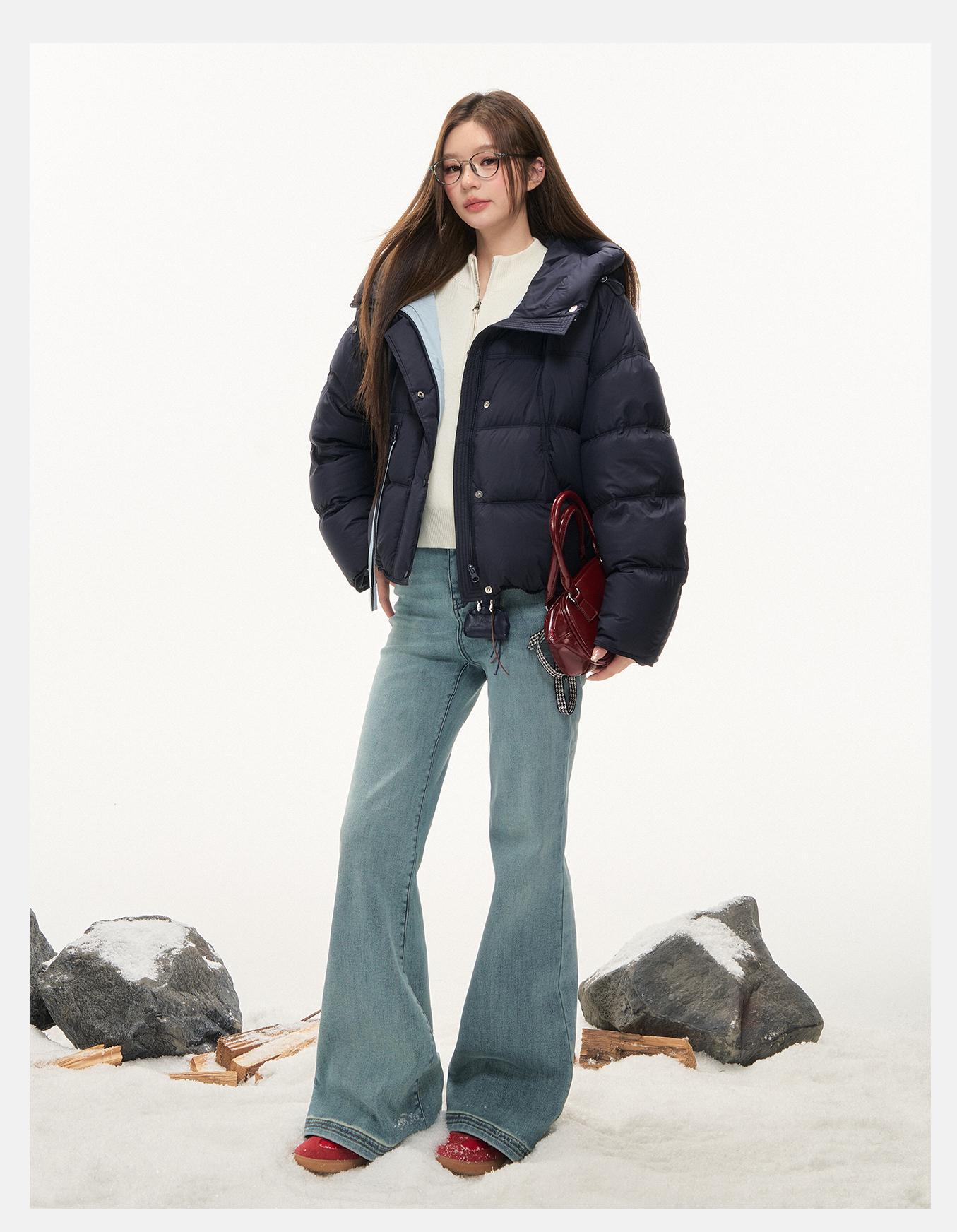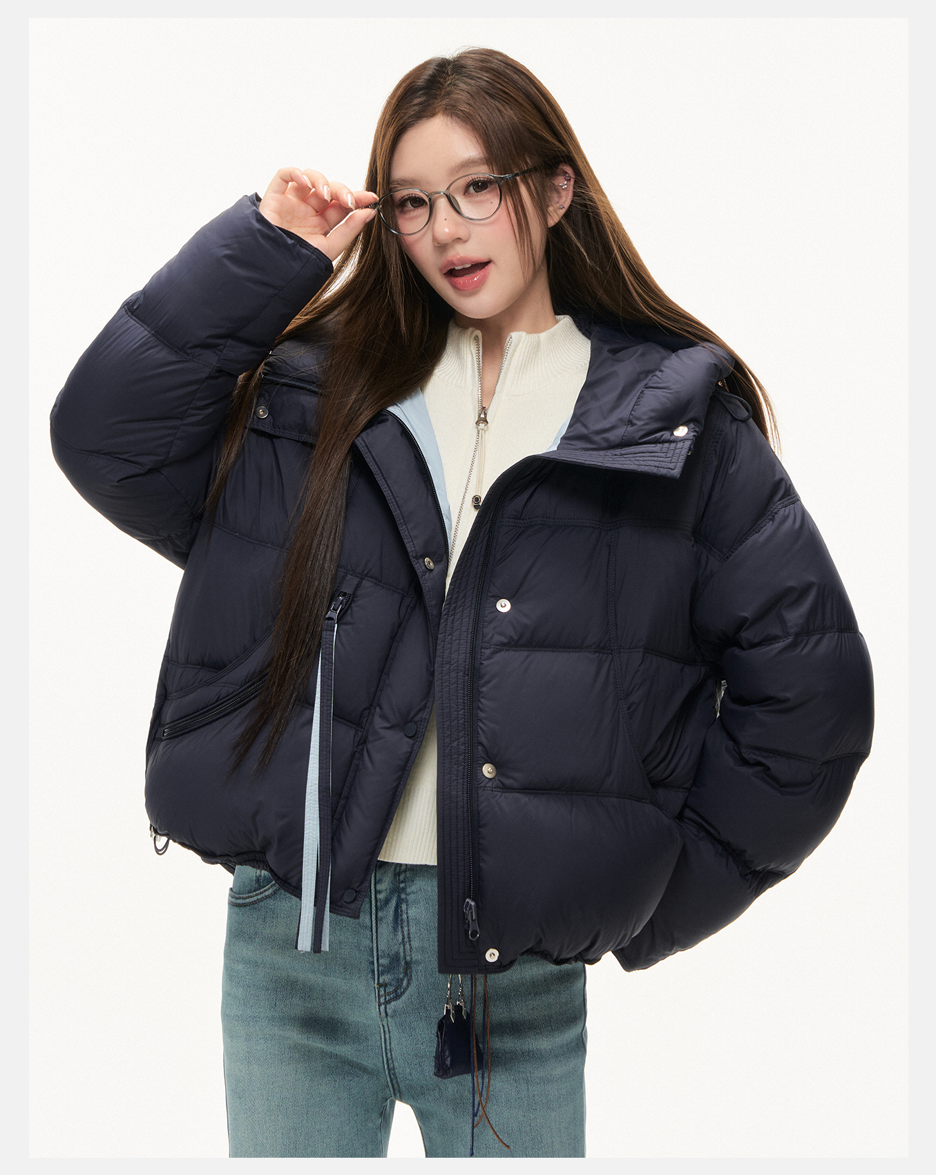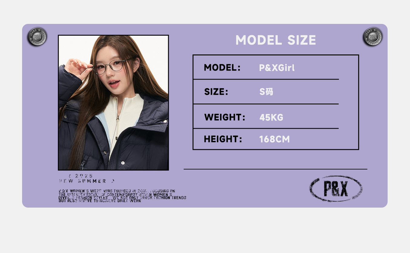 P&X设计师女装2025冬季保暖休闲风时尚鸭绒羽绒服825424028 深蓝