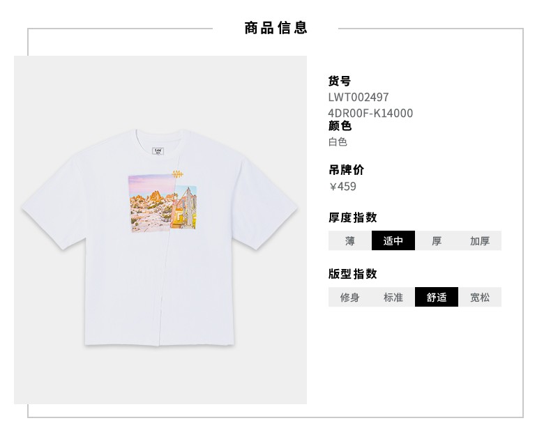 Lee商场同款22春夏新品101+舒适版多色印花女短袖T恤LWT0024974DR