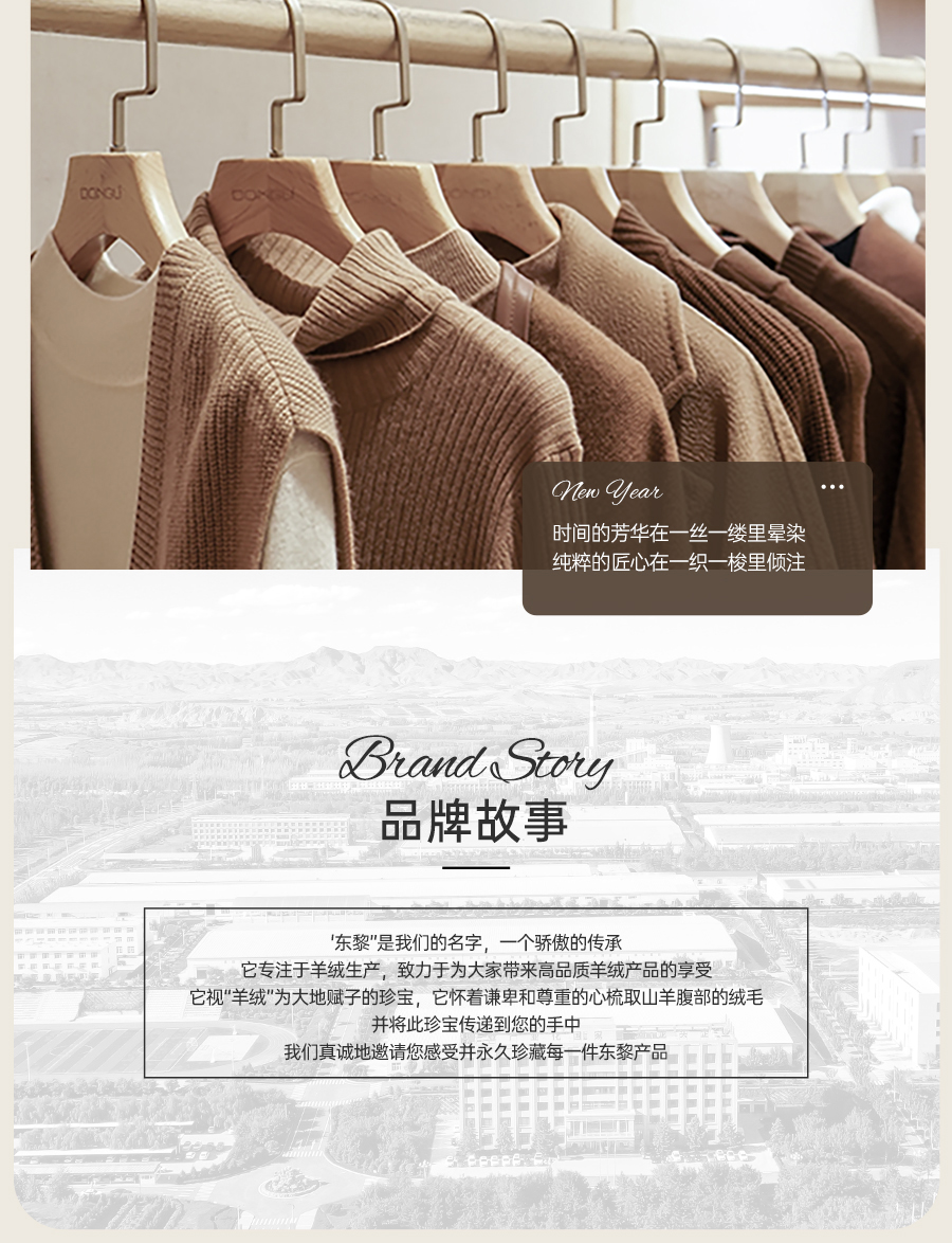 东黎羊绒是赤峰东荣集团自主品牌,自有牧场/羊绒制品全产业链优势,实现了羊绒从“牧场”到“商场”的华丽转变。