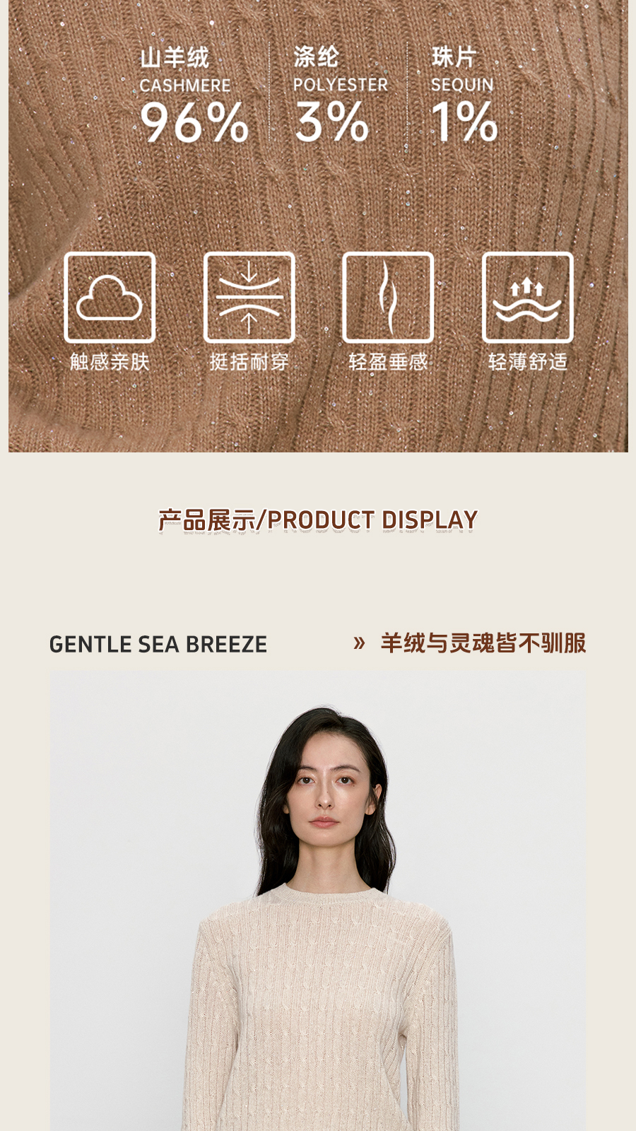 东黎 • 我不被驯化 星河入梦 山羊绒女士秋季圆领绞花套衫 4A97