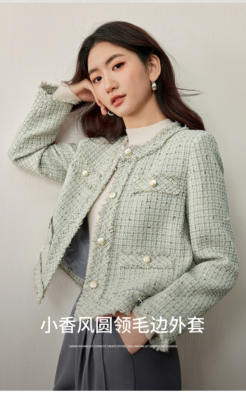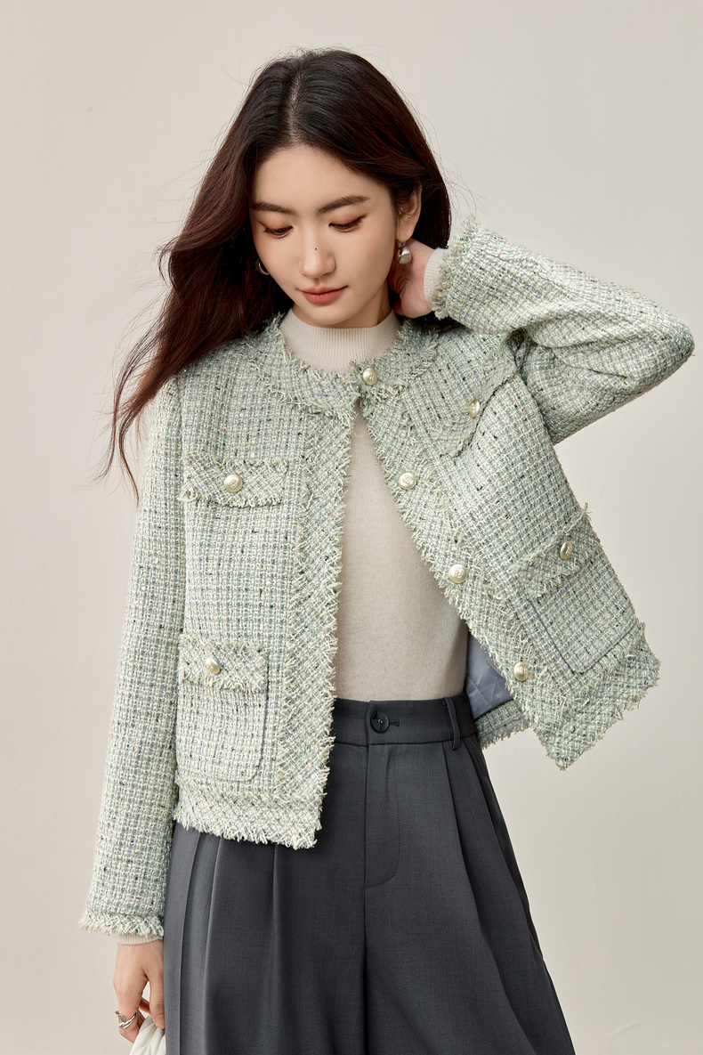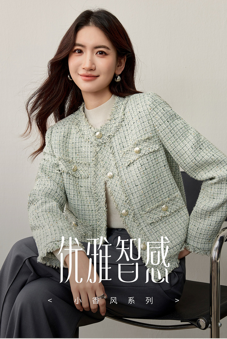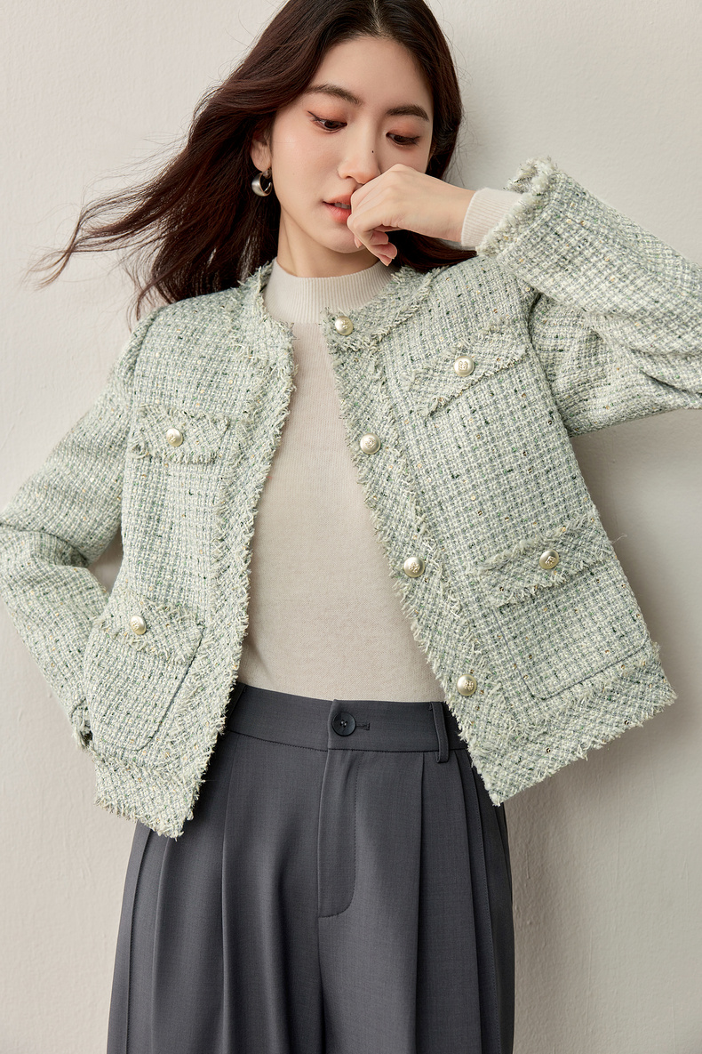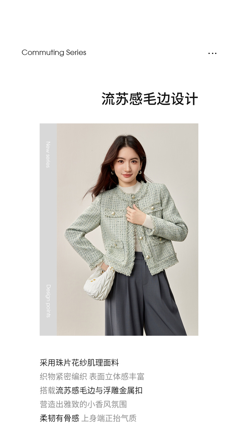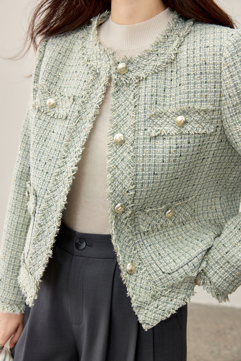 【内购】【流苏感毛边】优雅通勤圆领金属扣珠片小香风外套-153WA2264
