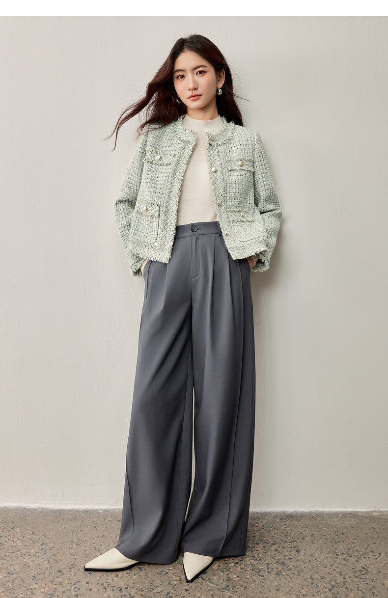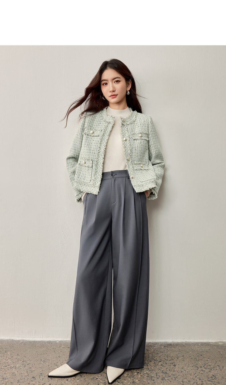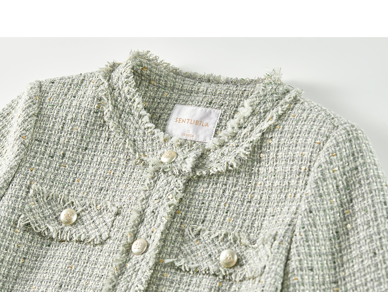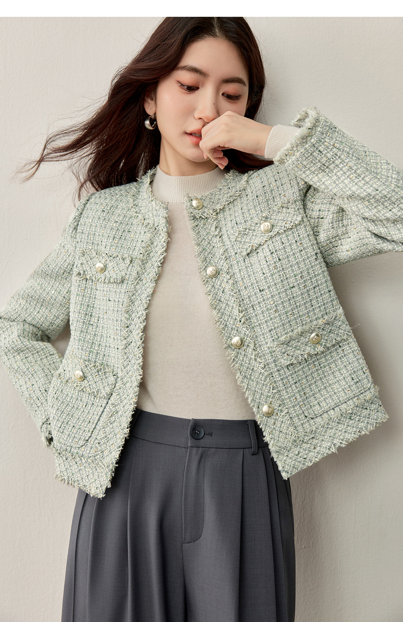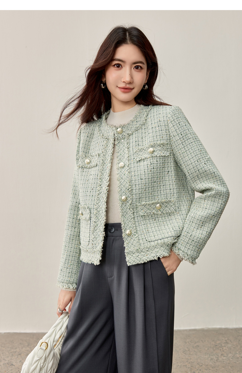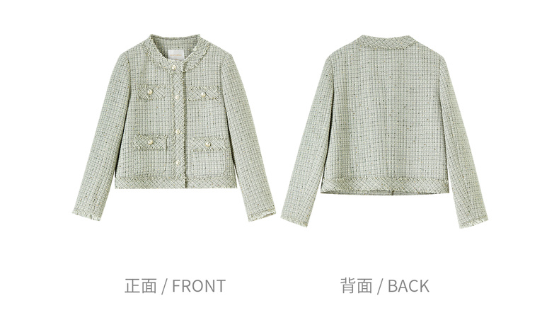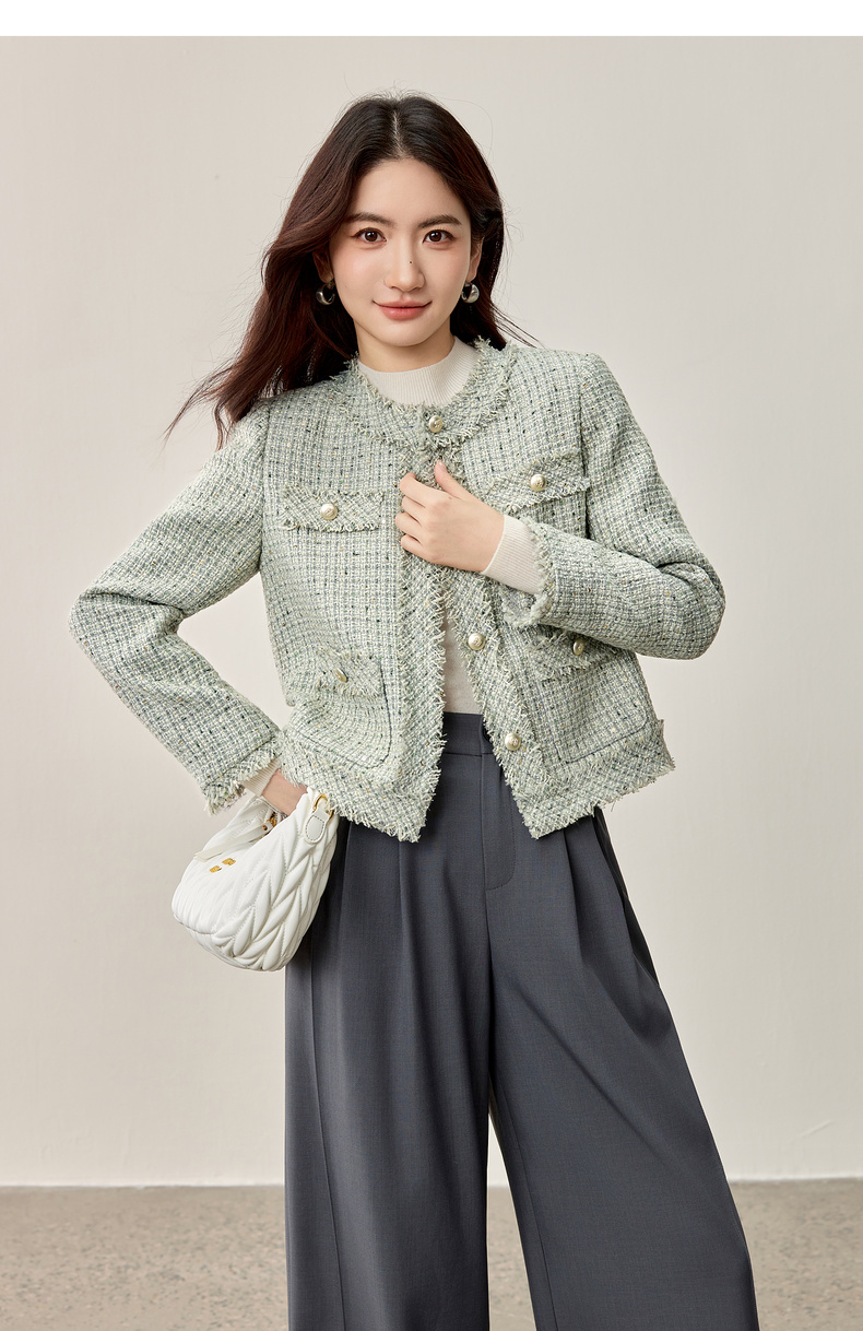 【内购】【流苏感毛边】优雅通勤圆领金属扣珠片小香风外套-153WA2264