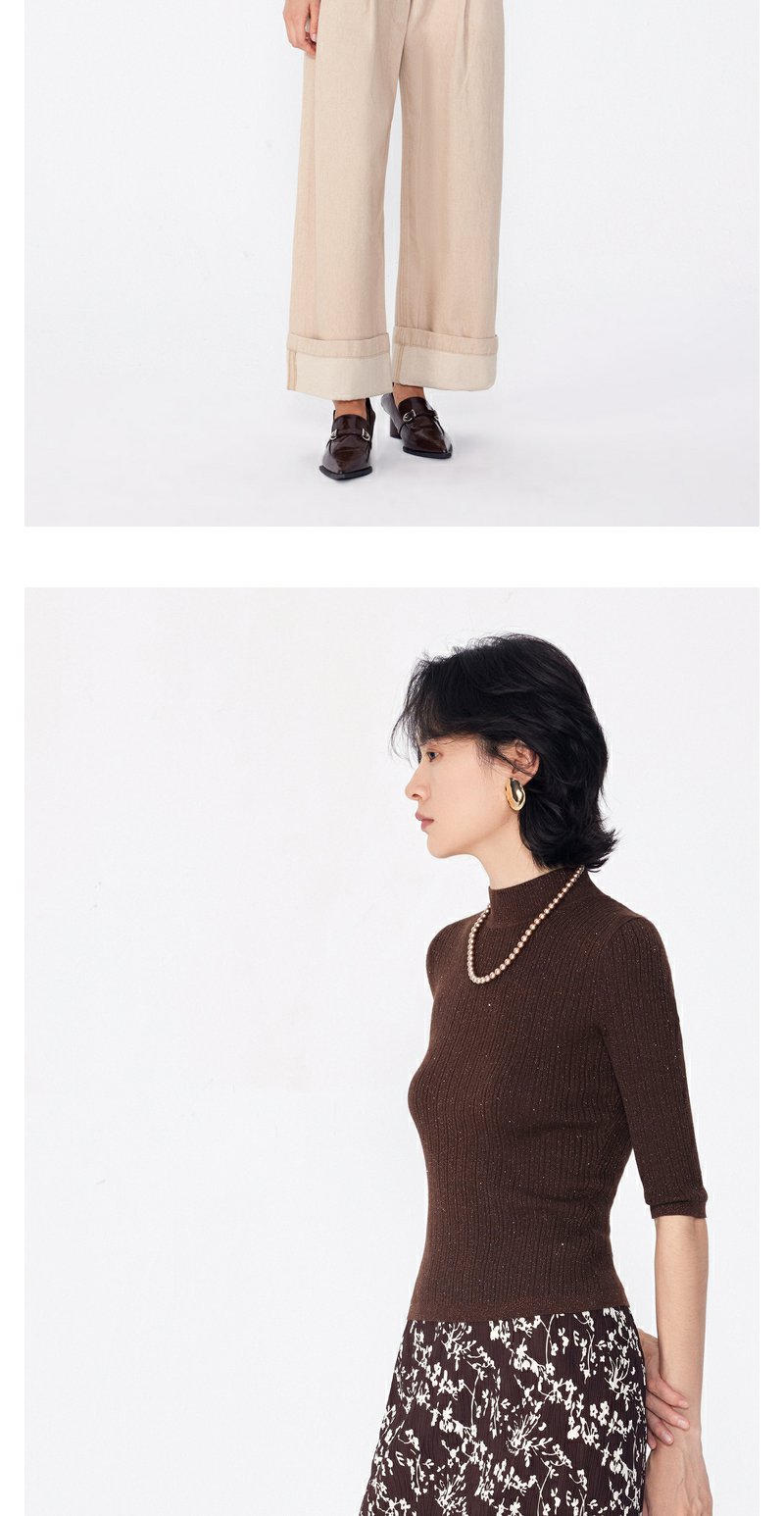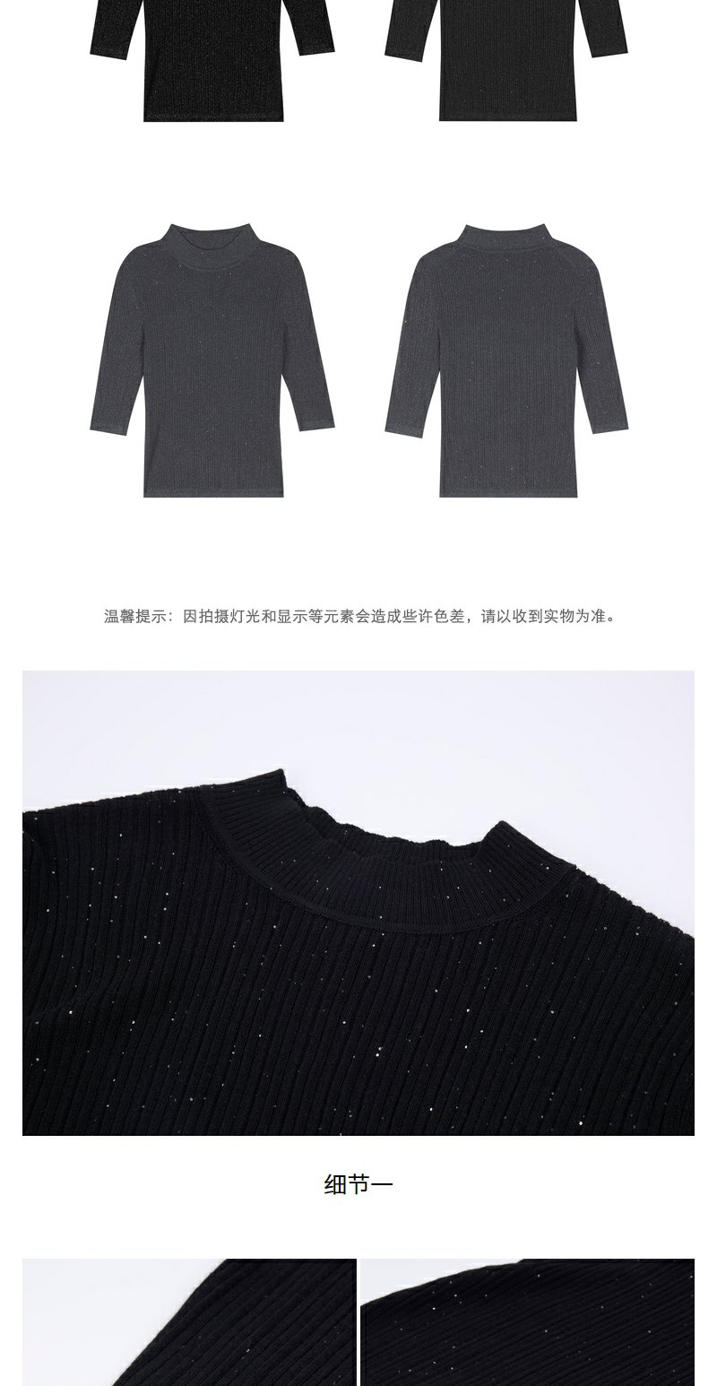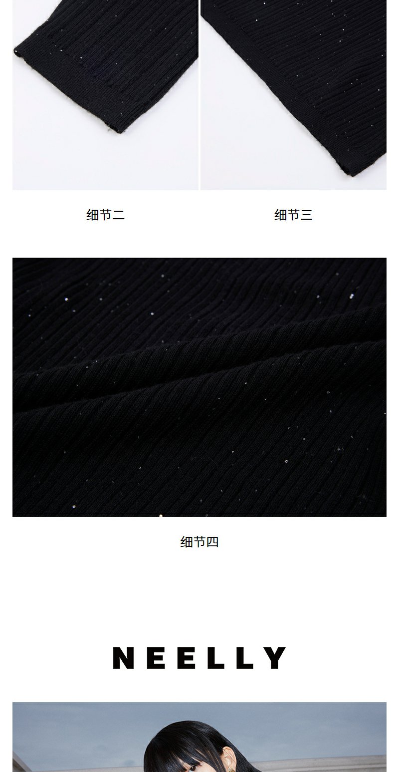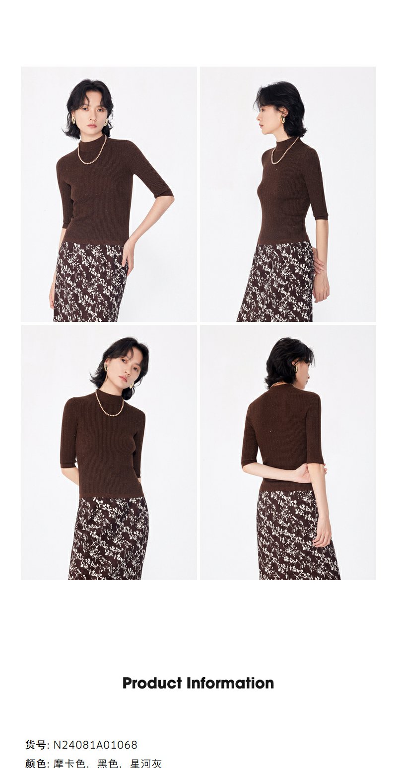 NEELLY纳俪商场同款早秋新款7分袖半高领针织衫女修身打底衫上衣N24081A01068