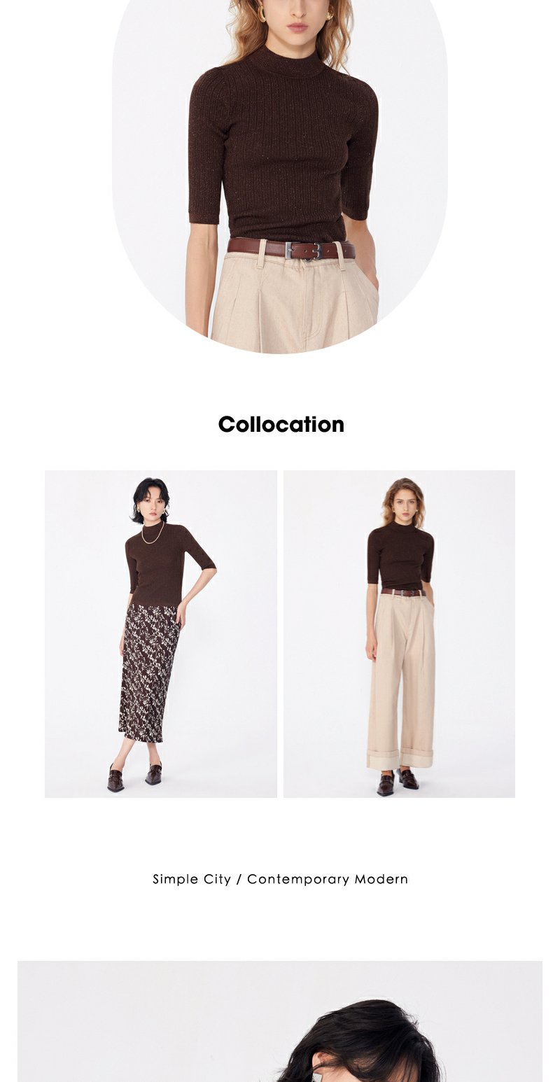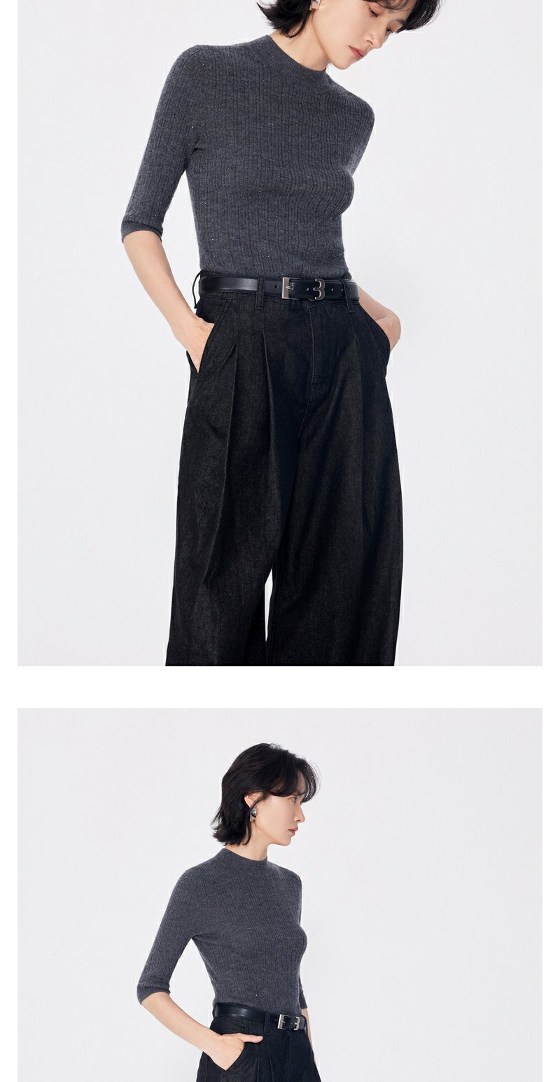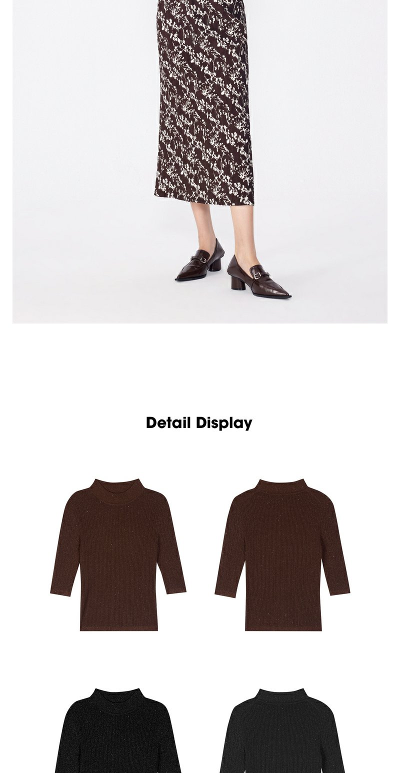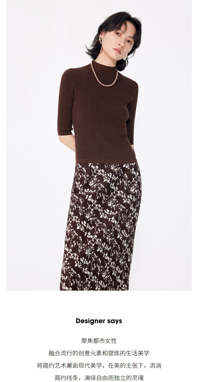 NEELLY纳俪商场同款早秋新款7分袖半高领针织衫女修身打底衫上衣N24081A01068