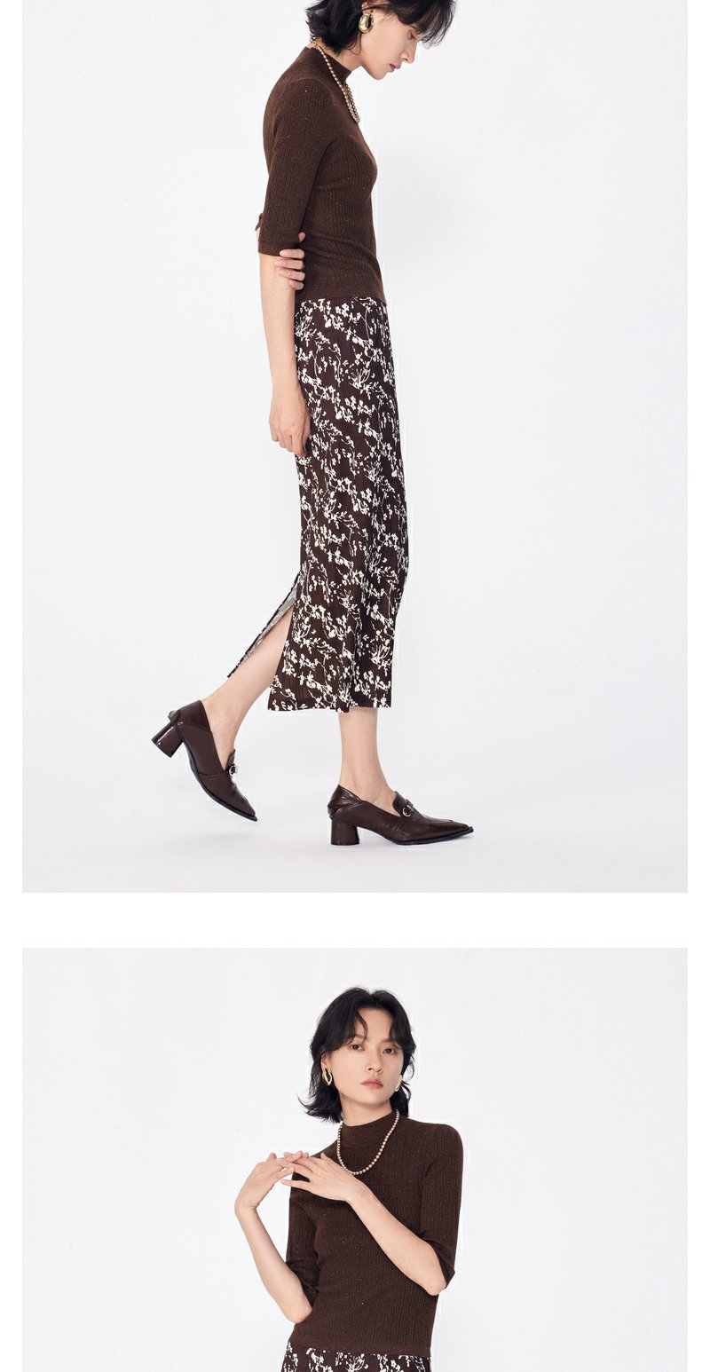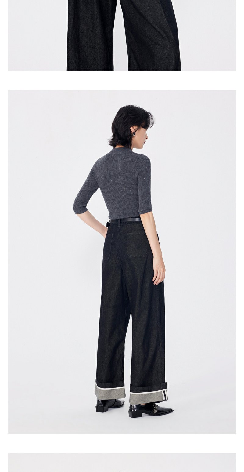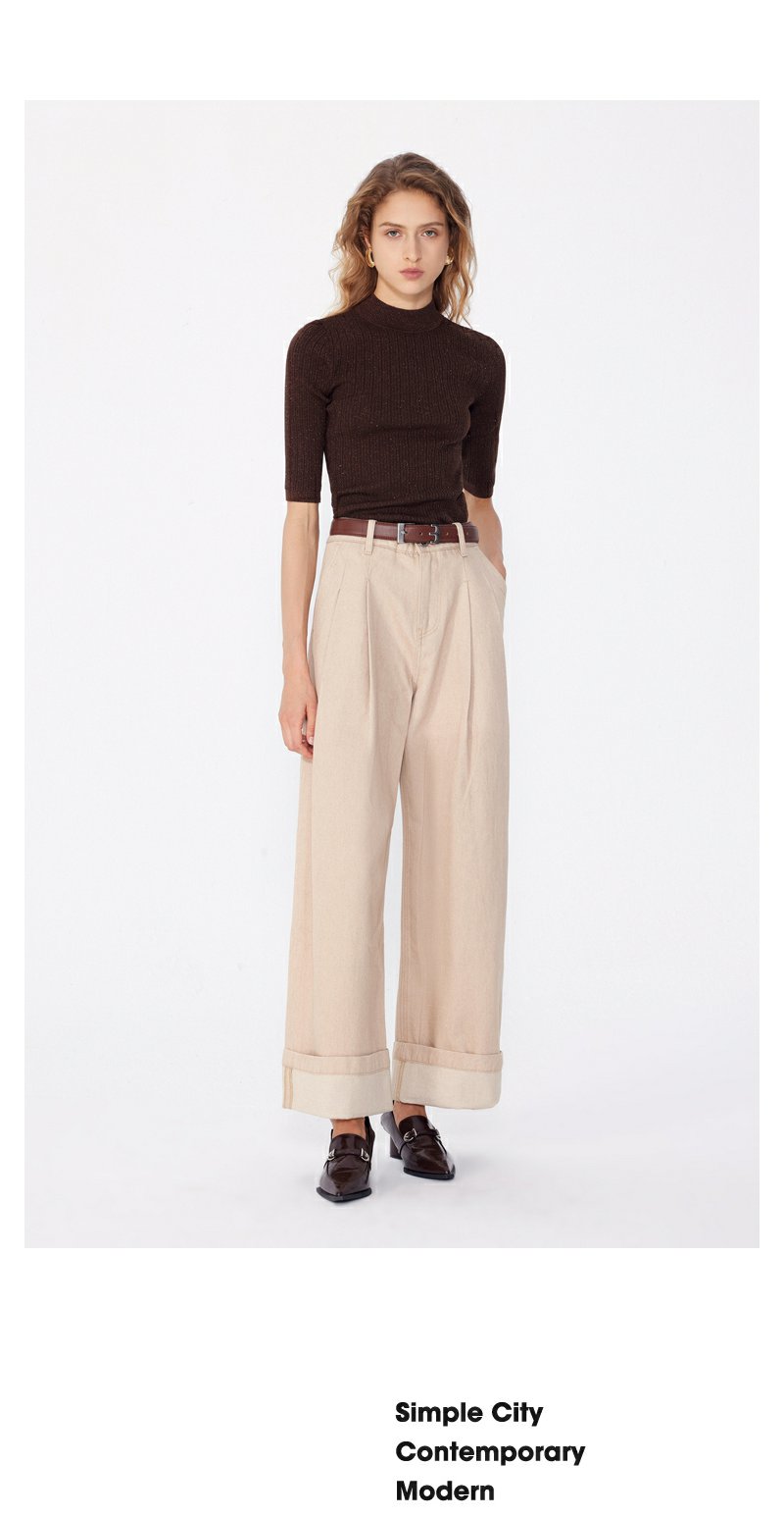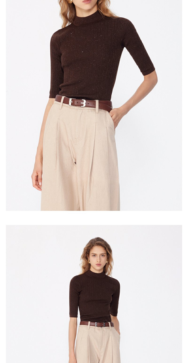 NEELLY纳俪商场同款早秋新款7分袖半高领针织衫女修身打底衫上衣N24081A01068