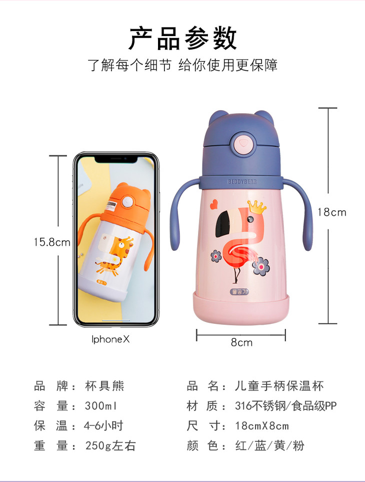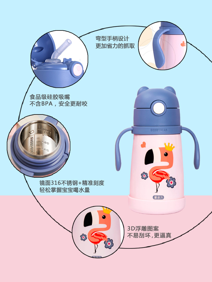 【秋冬热卖】韩国Beddybear/杯具熊 儿童萌宠浮雕学饮保温杯300ml