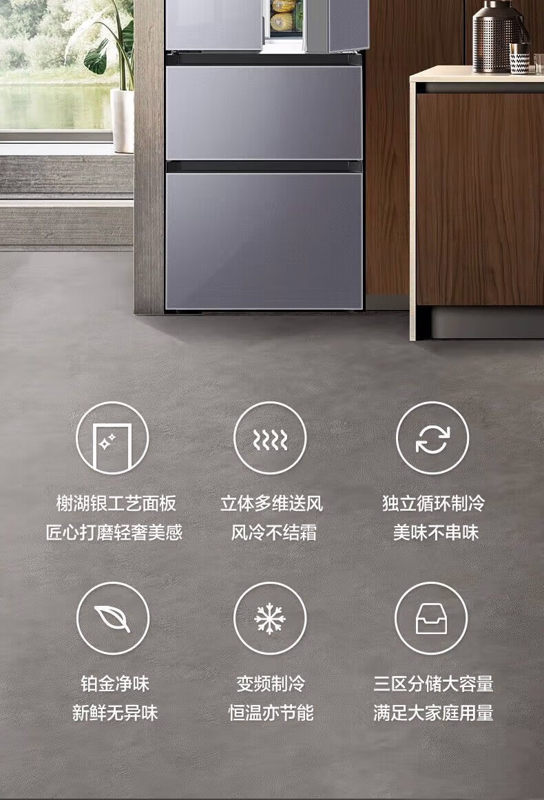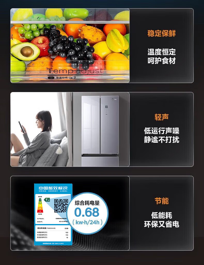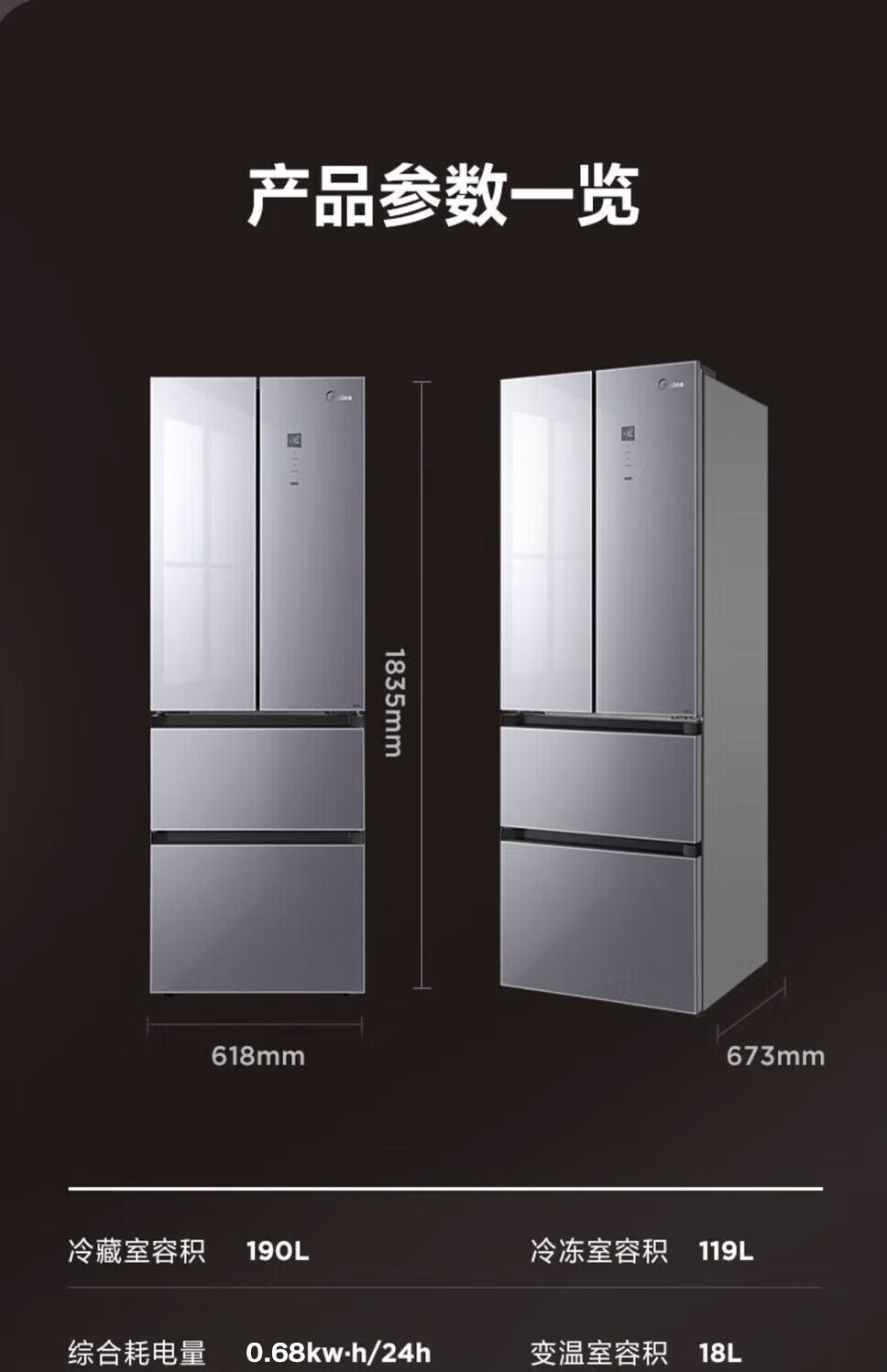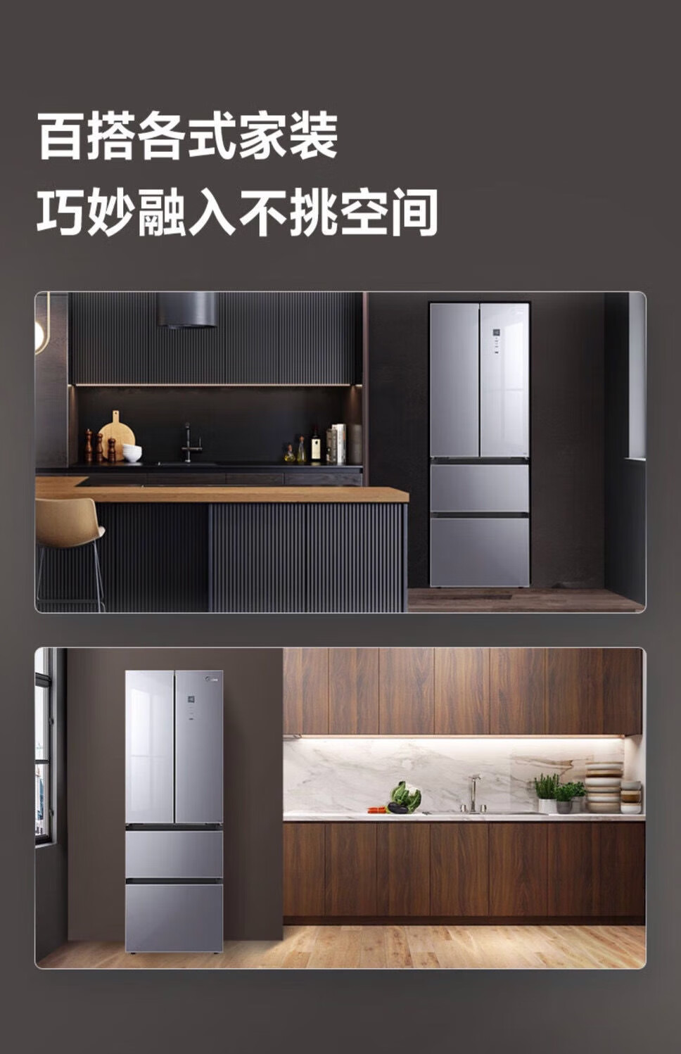 【美的】冰箱_327L法式多门双变频恒温养鲜风冷三区独立循环大容量超薄玻璃门冰箱 榭湖银_BCD-327WFGPM【佛山】