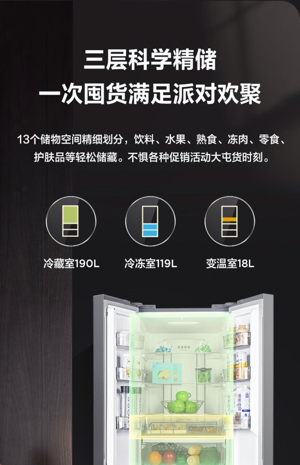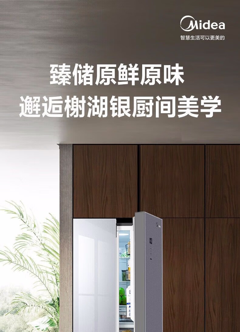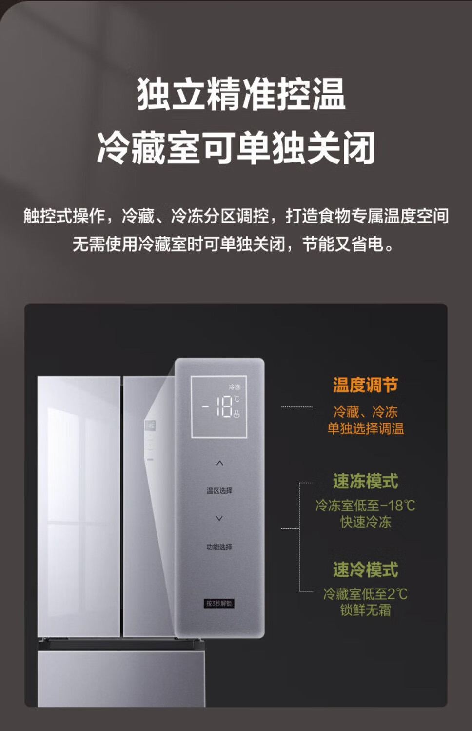 【美的】冰箱_327L法式多门双变频恒温养鲜风冷三区独立循环大容量超薄玻璃门冰箱 榭湖银_BCD-327WFGPM【佛山】