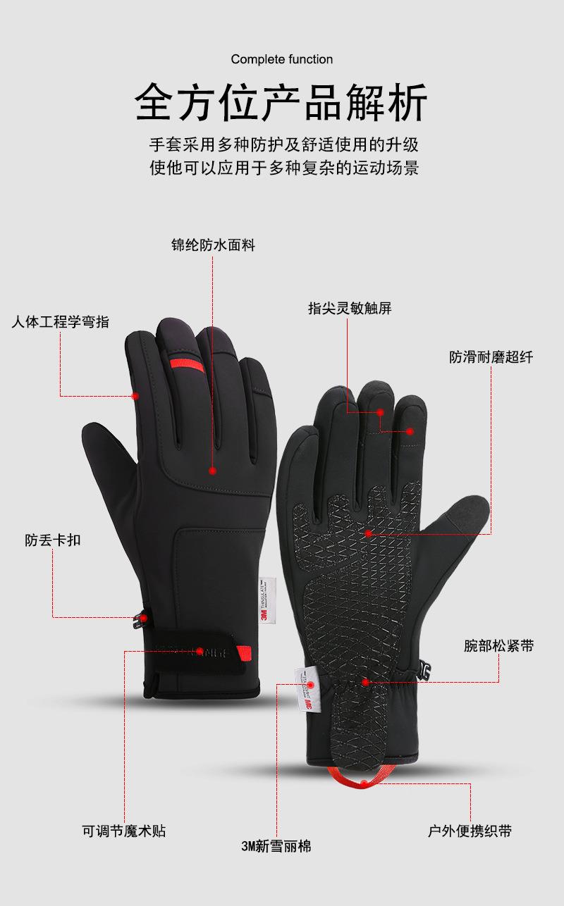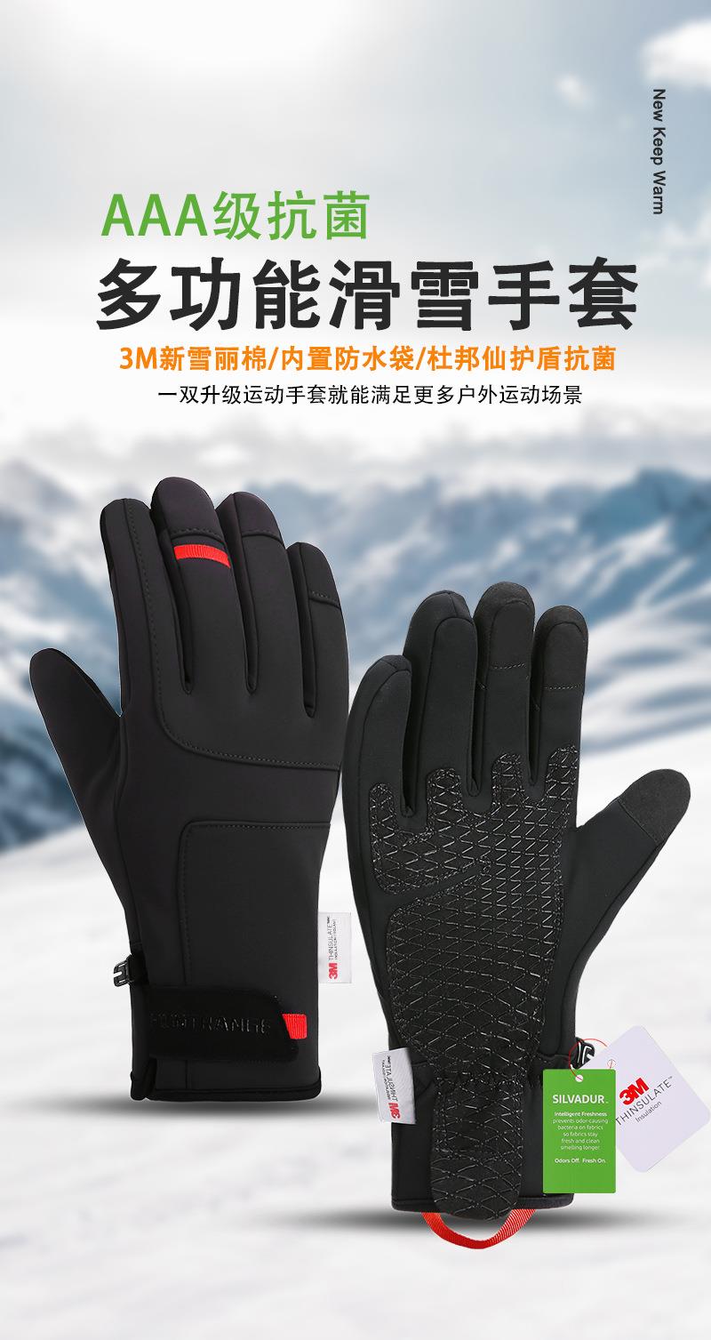 跨境冬季滑雪手套男女户外骑行运动防水抗菌3M新雪丽触屏保暖手套