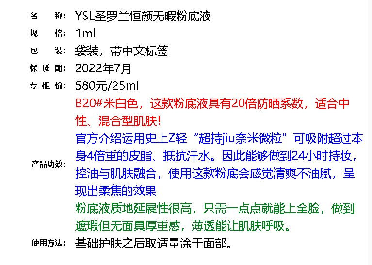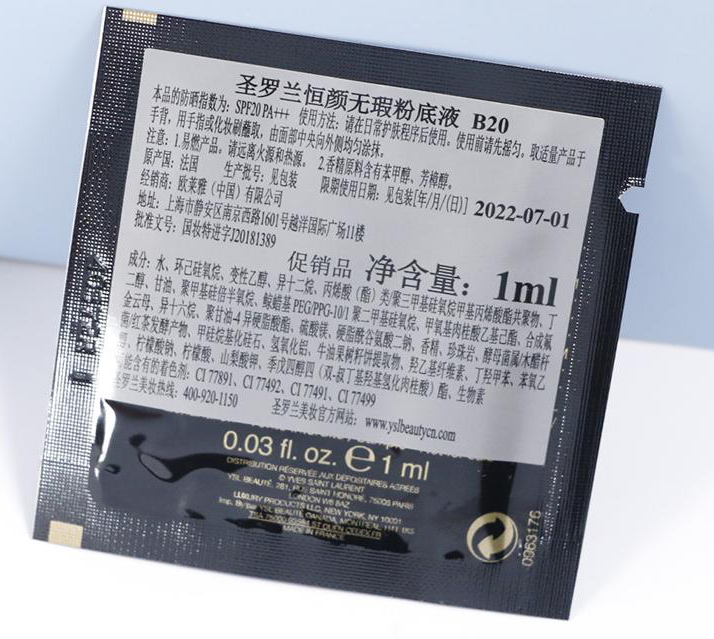 YSL 圣罗兰恒颜无暇粉底液B20 1ml(专柜)片装