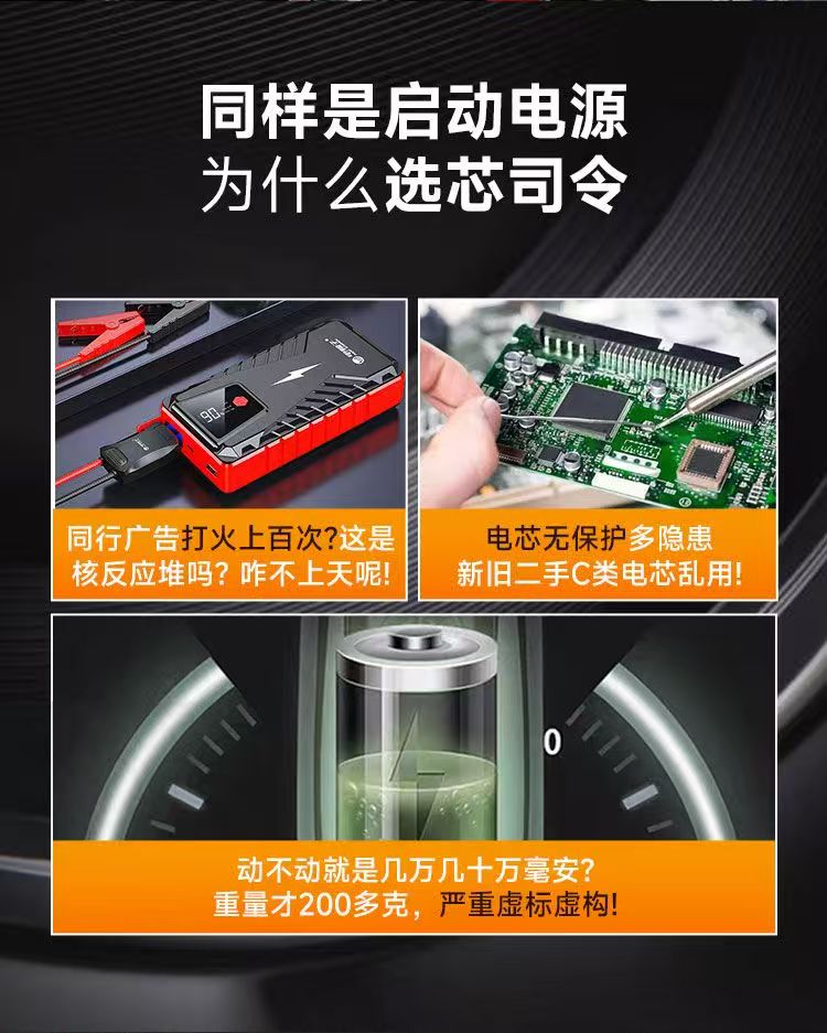 芯司令汽车应急启动电源移动充电宝保护车载电瓶备用搭电神器