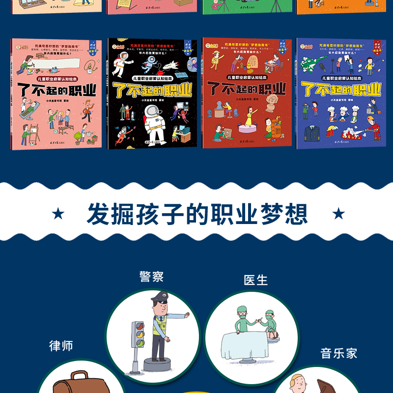 《儿童职业启蒙认知绘本-了不起的职业》(全8册)40余种职业100余种职业工具290种职业有趣互动