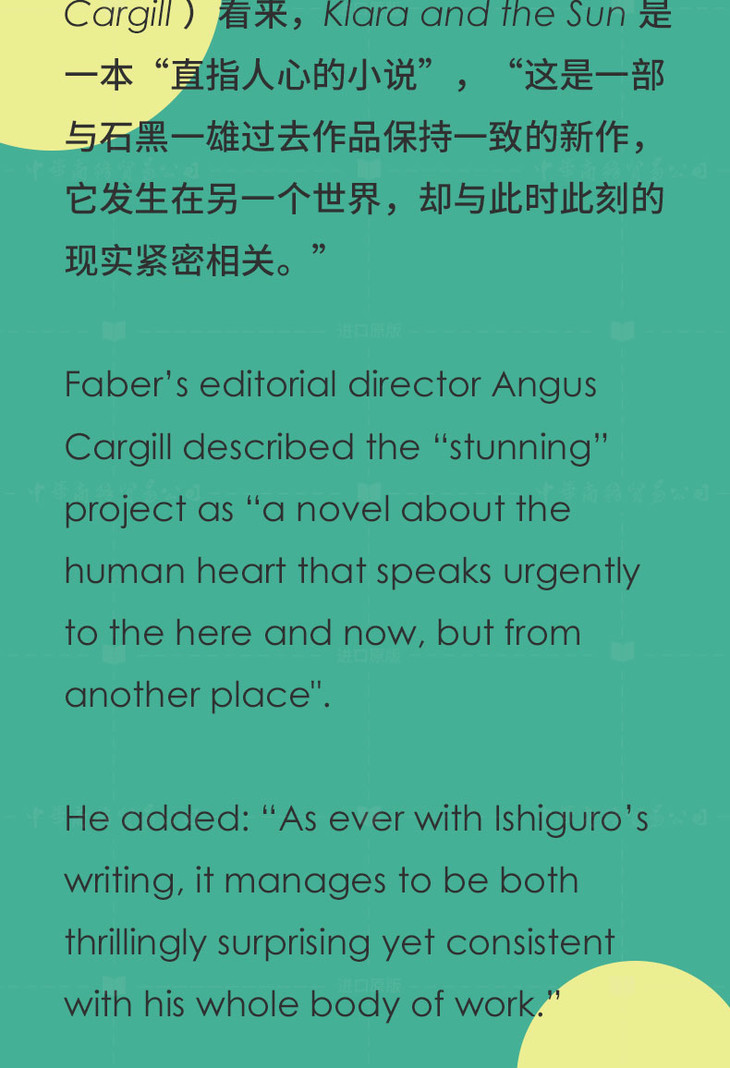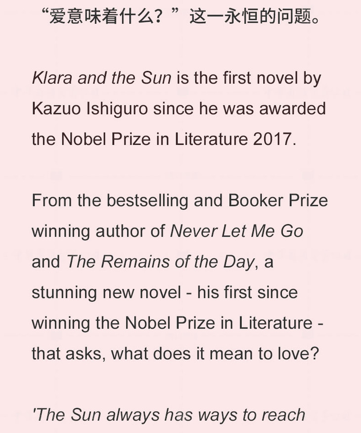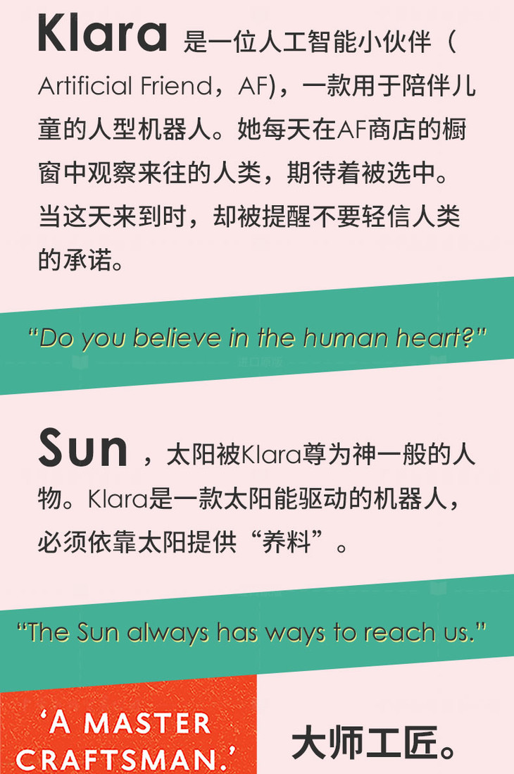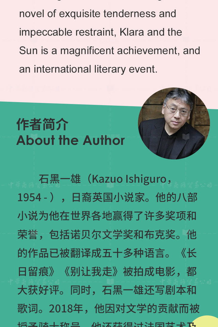 【中商原版】诺贝尔文学奖2017年得主 石黑一雄 克拉拉与太阳 英版平装 英文原版 Klara and the Sun Kazuo Ishiguro 费伯小说