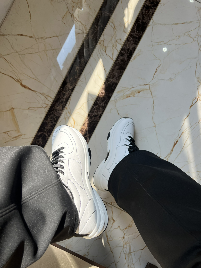 鞋面3D电脑刺绣图案,寥寥数笔,大气简洁,写意留白。黑色的鞋带,黑色的内垫,鞋头黑色,底片黑色,标准的真香黑白CP,无比优雅简洁,这就是搭配牛仔裤好看搭配连衣裙也唯美的高端休闲鞋呀。