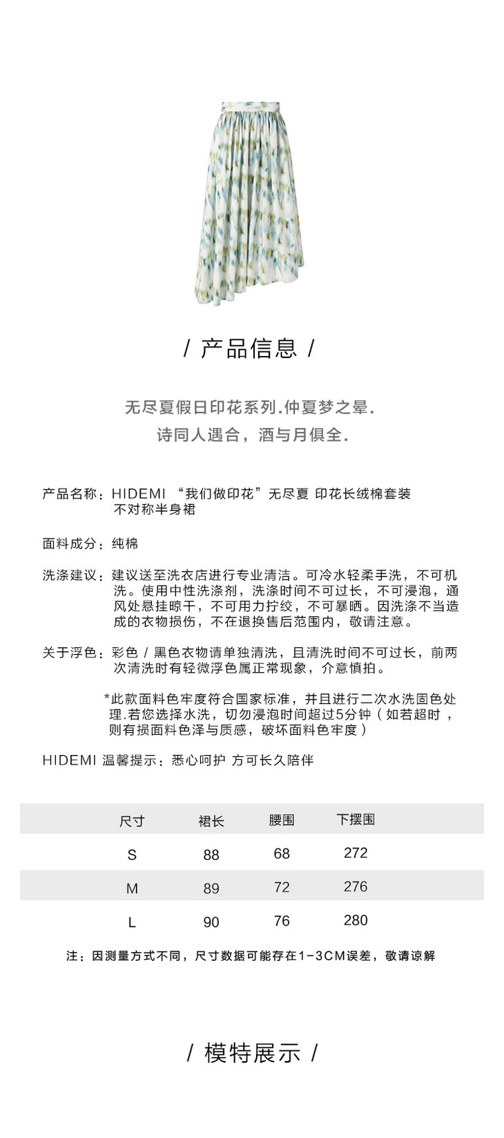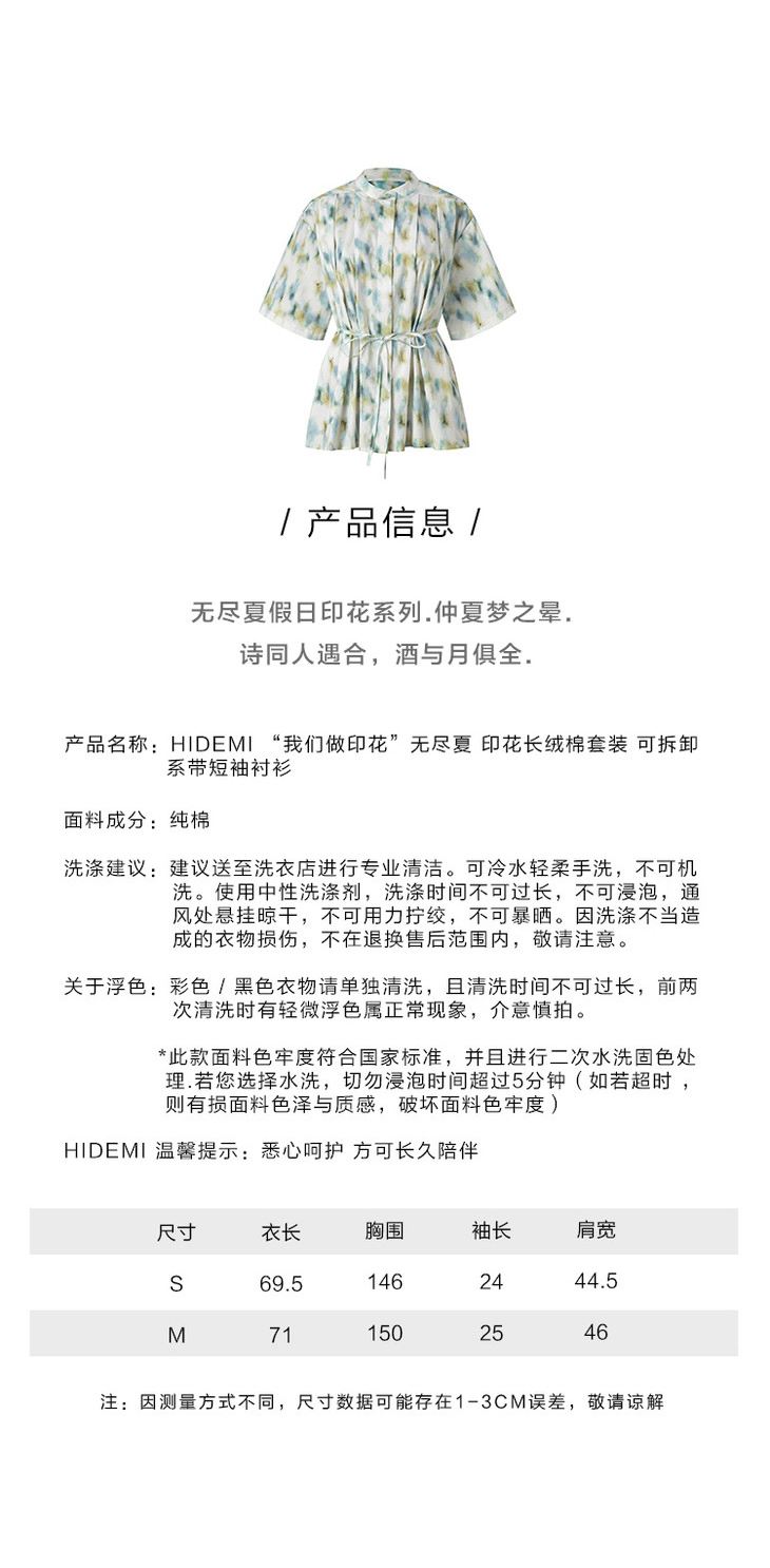 HIDEMI “我们做印花”无尽夏 印花长绒棉套装 可拆卸系带短袖衬衫/不对称半身裙
