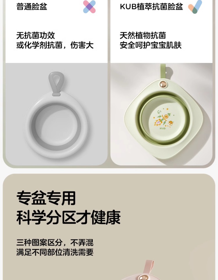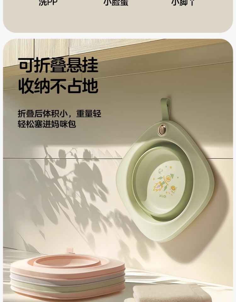 KUB可优比婴儿折叠脸盆宝宝洗脸盆新生儿洗屁股盆便携式儿童专用