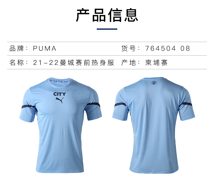 PUMA/彪马 21-22赛季曼城赛前热身服短袖男76450408