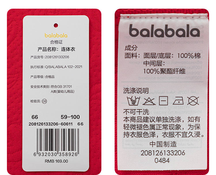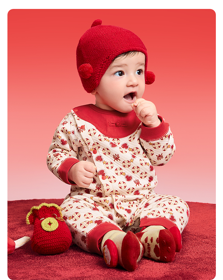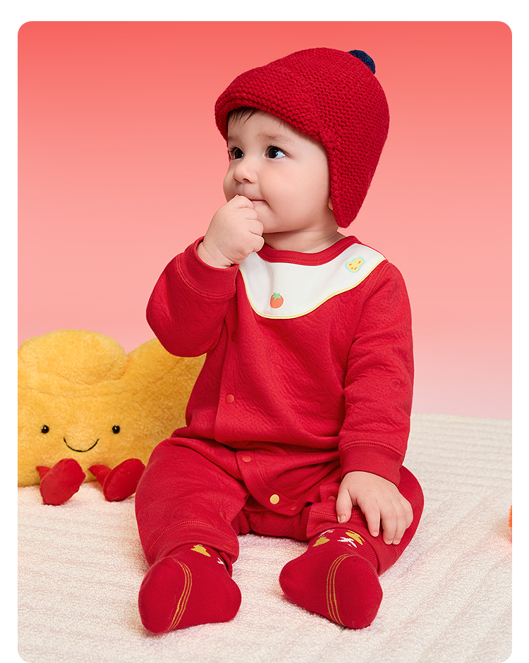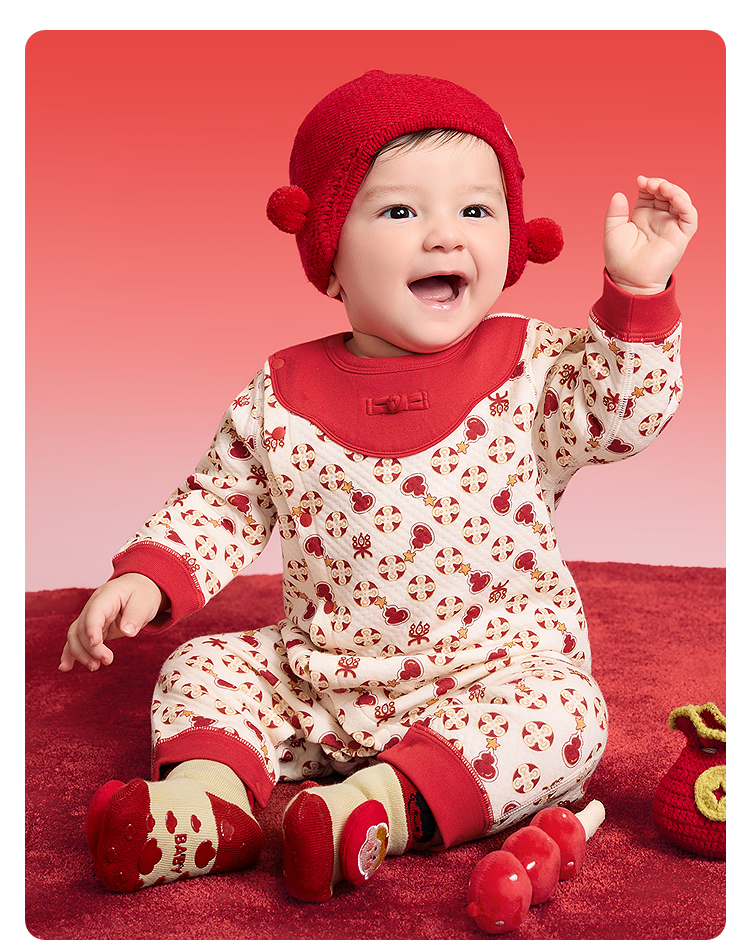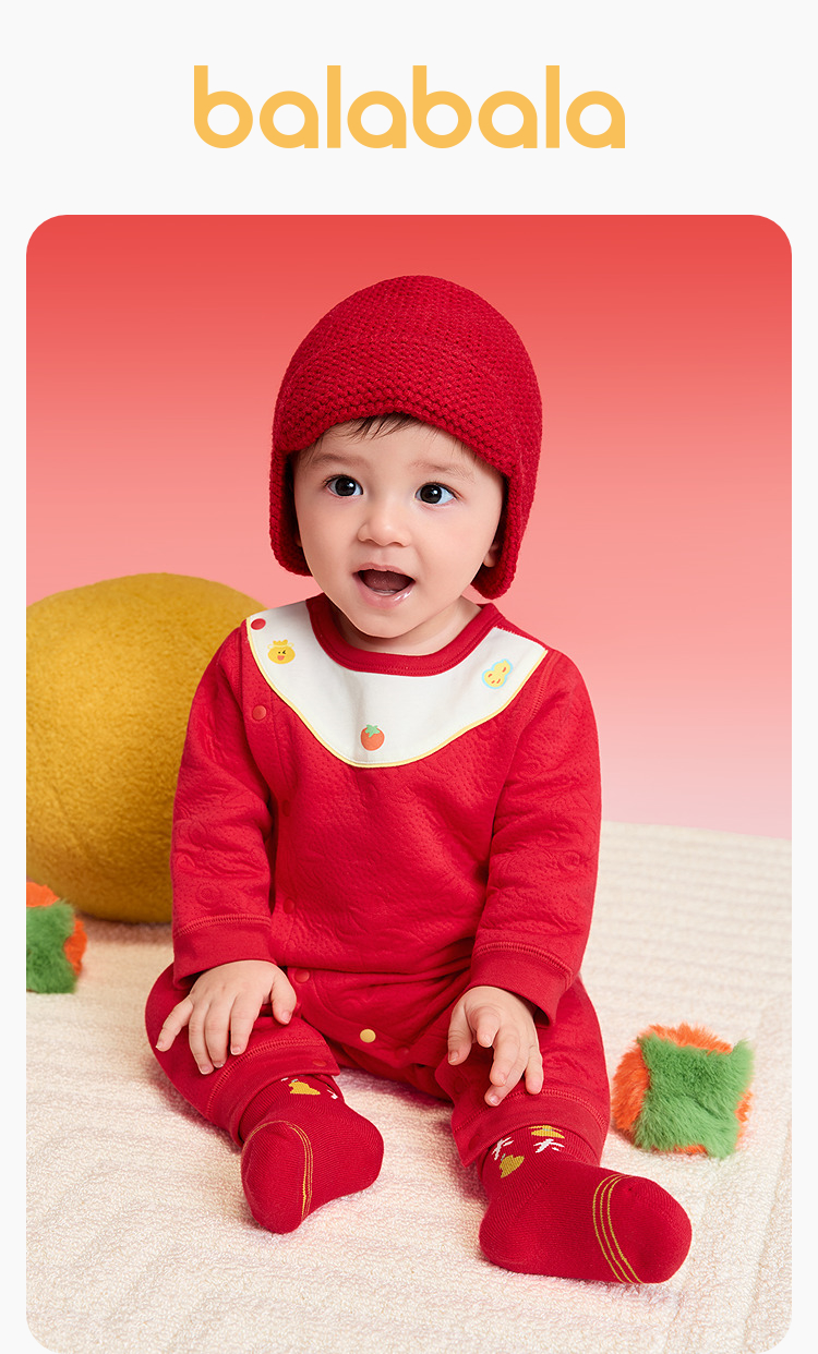 【balaOne】巴拉巴拉童装宝宝内着连体衣2025新款年服喜庆可爱萌