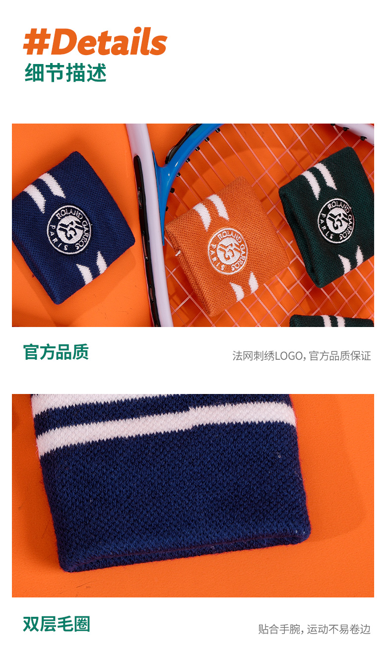 罗兰加洛斯法网护腕男女专业运动吸汗擦汗腕带网球周边装备护具