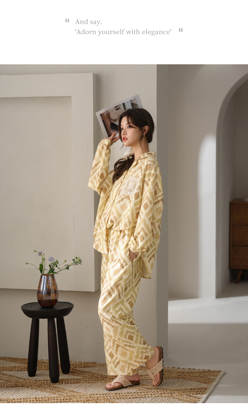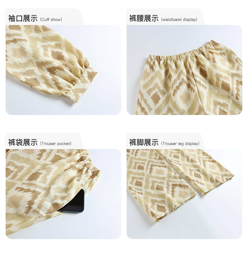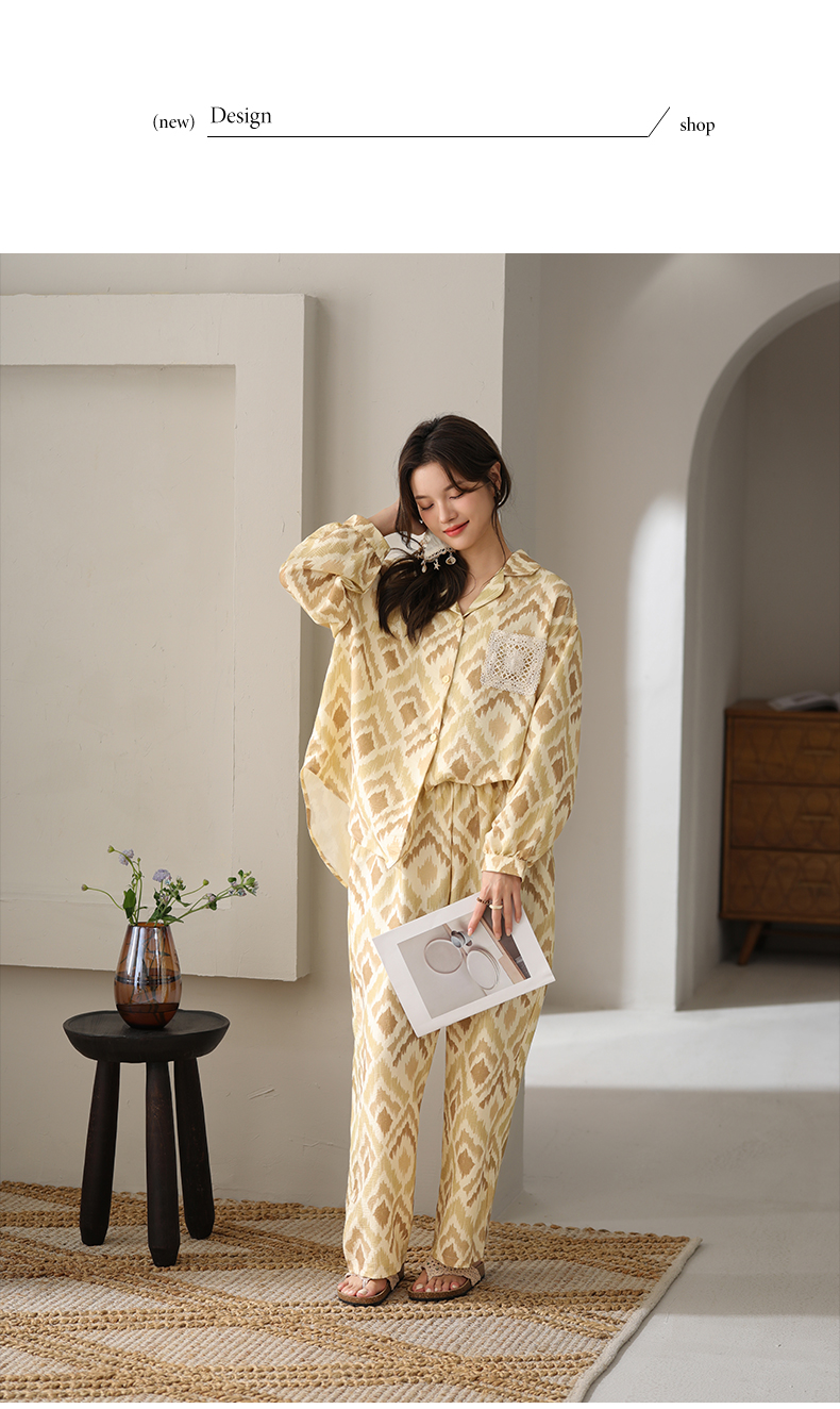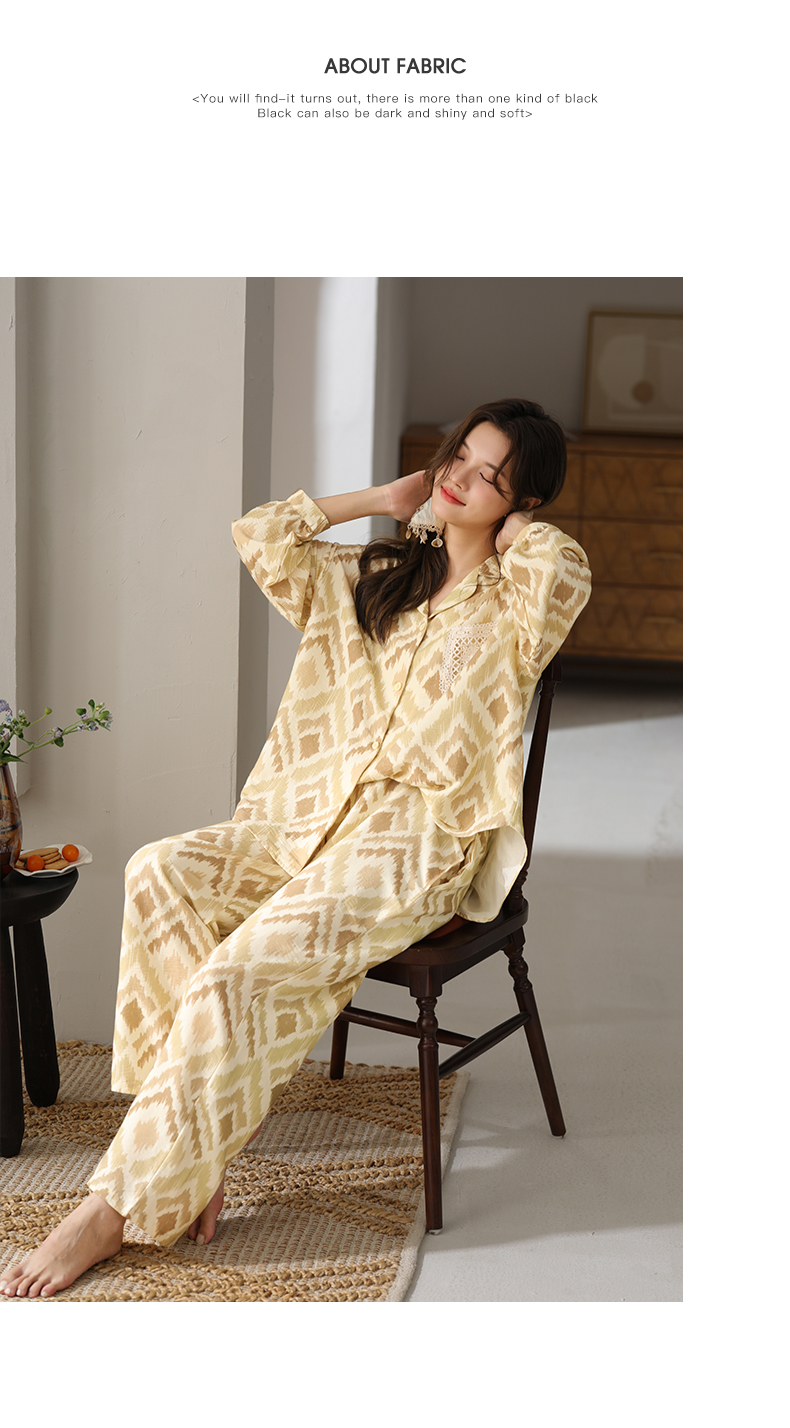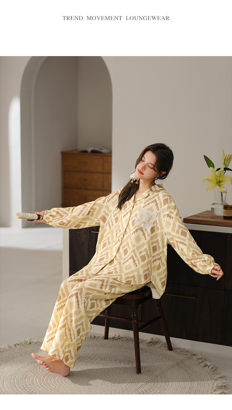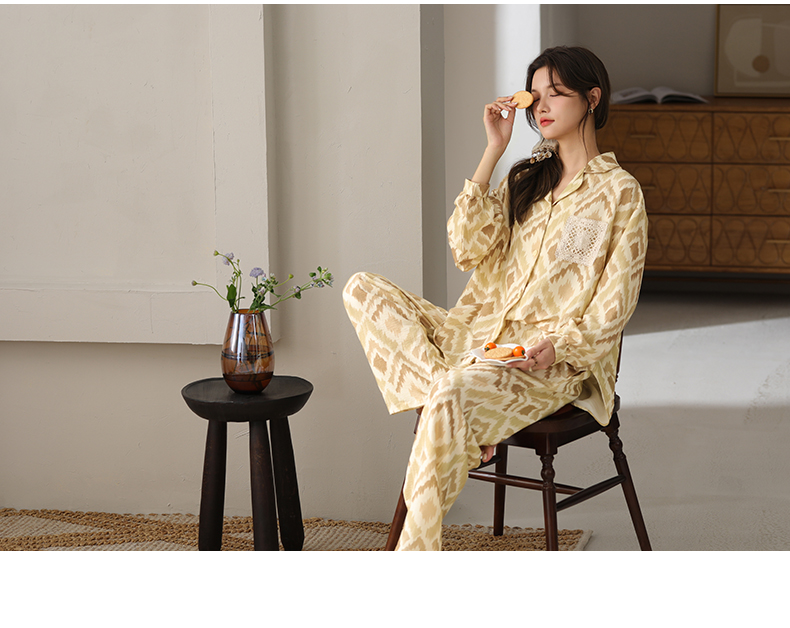 可人儿春秋季带胸垫泡泡绵女士长袖长裤睡衣可外出小众家居服套装