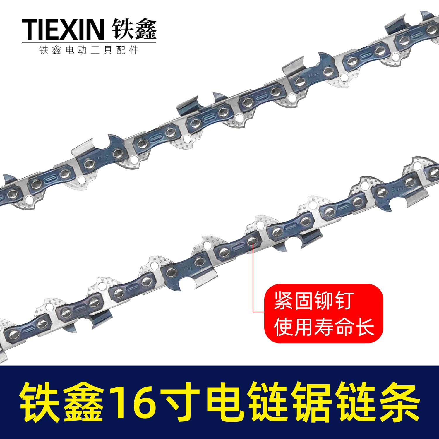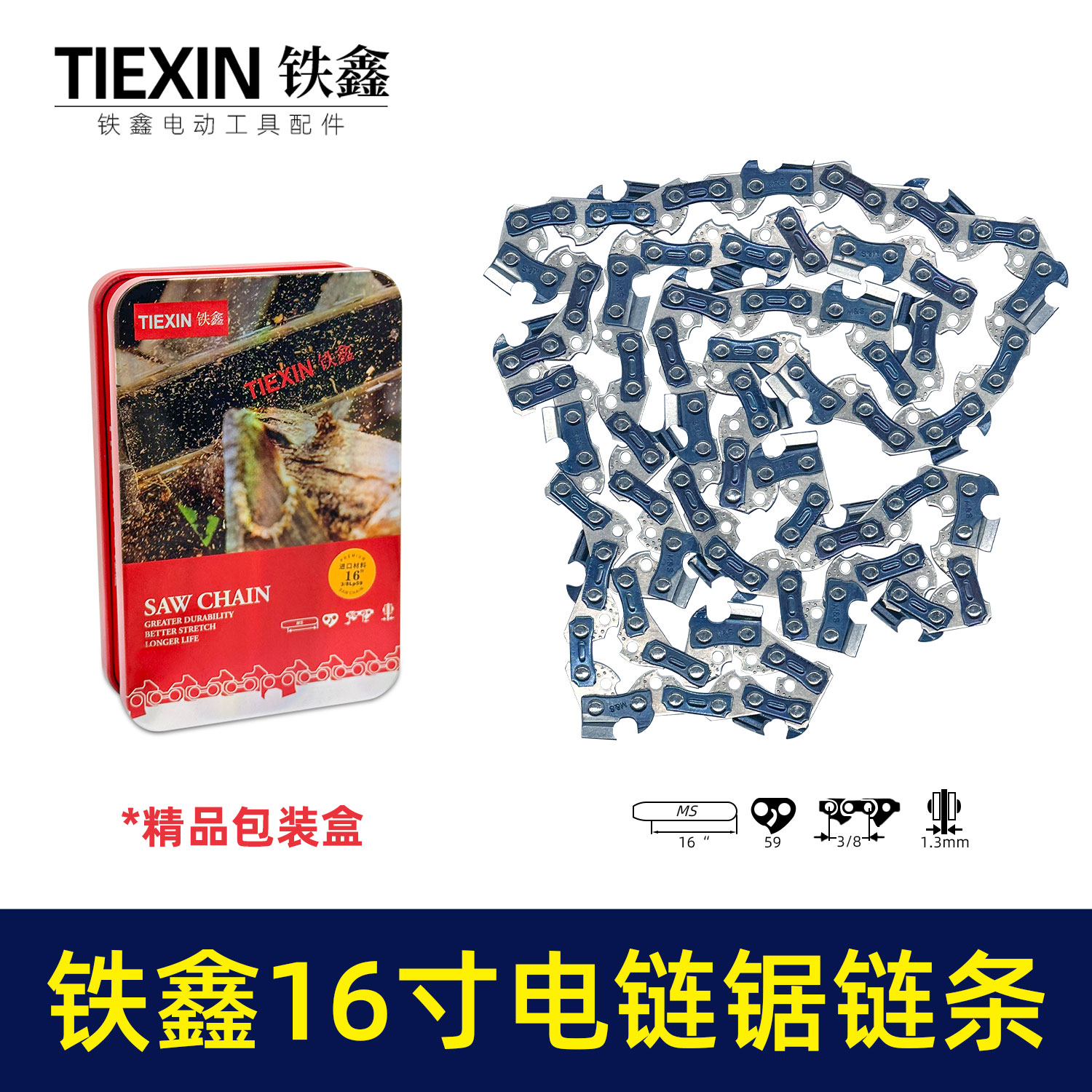【货号09028】铁鑫精品3/8(59节)16寸链条链条链条锂电锯电链锯链条铁盒包装进口材料高温淬火刀头