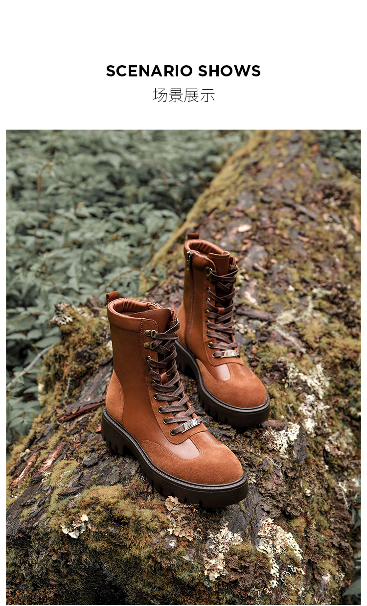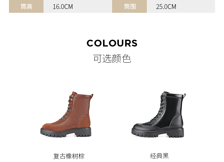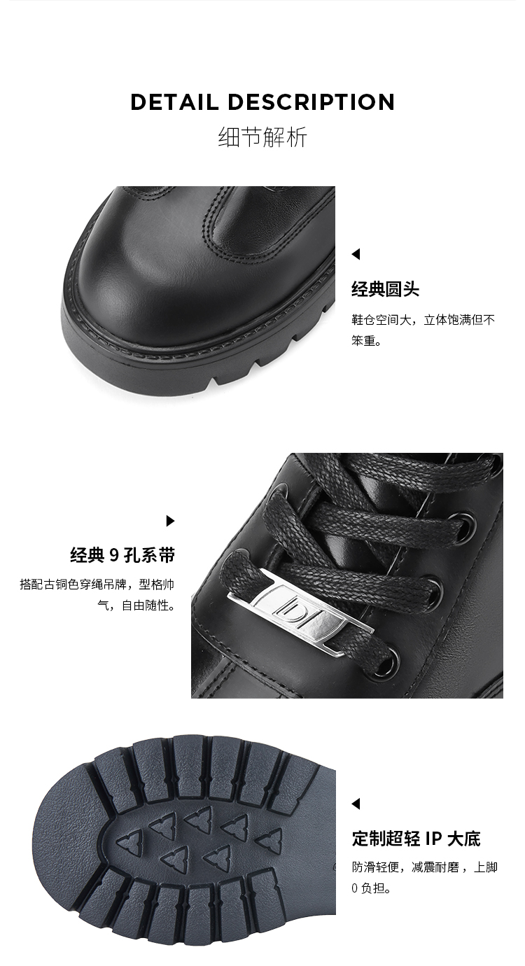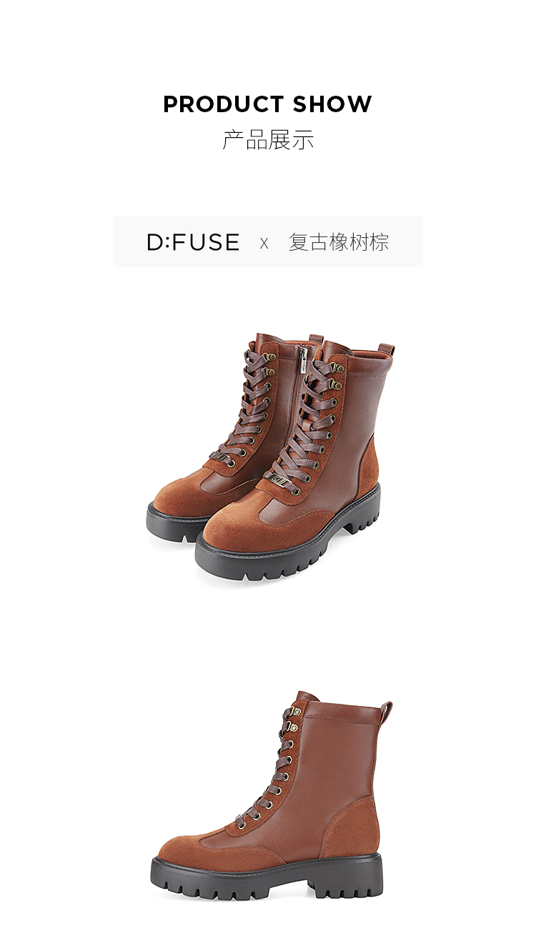 Dfuse迪芙斯冬季款圆头经典系带马丁靴厚底短靴女DF34116001